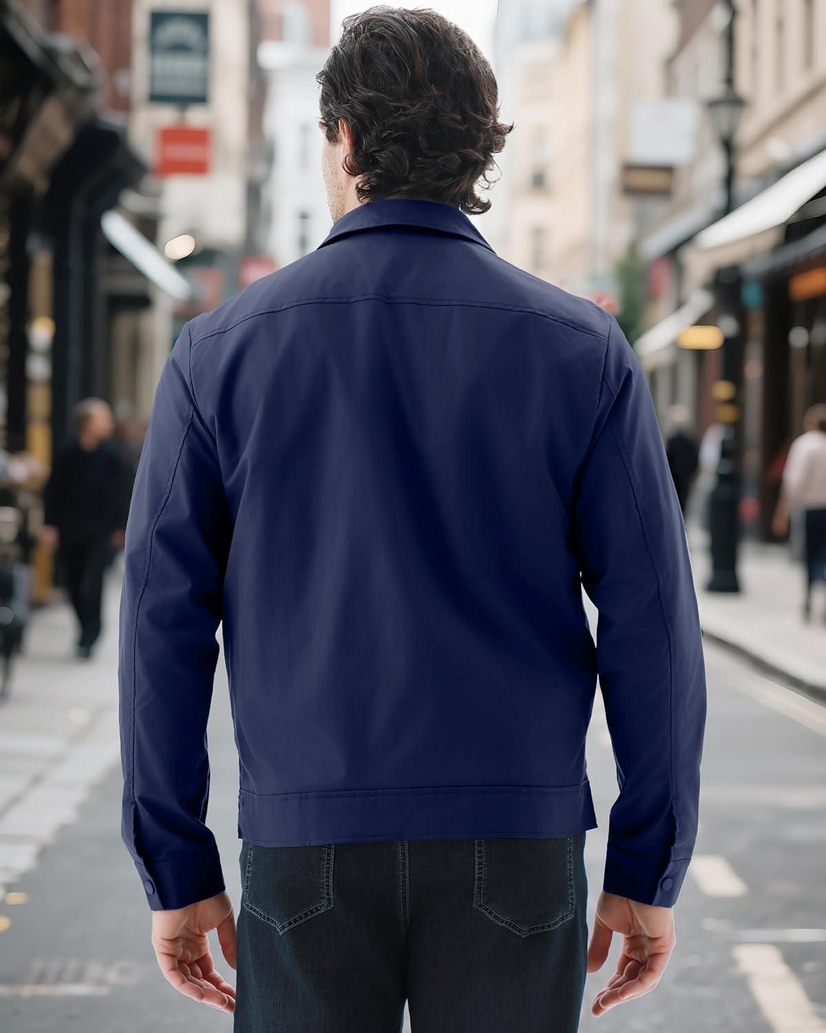 WULFUL Men's Lightweight Jackets Casual Windbreaker Stylish Light Golf Work Dress Business(Navy)