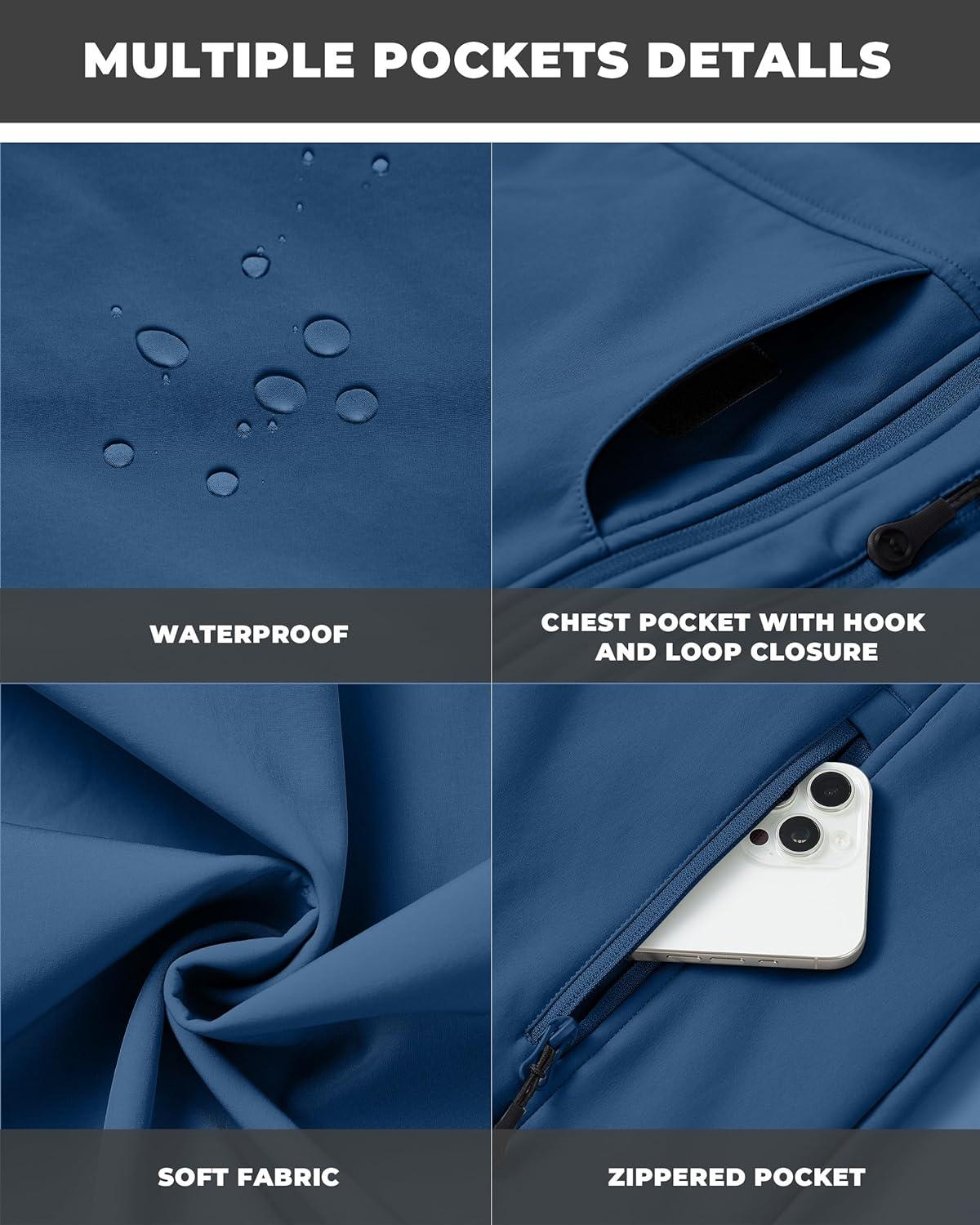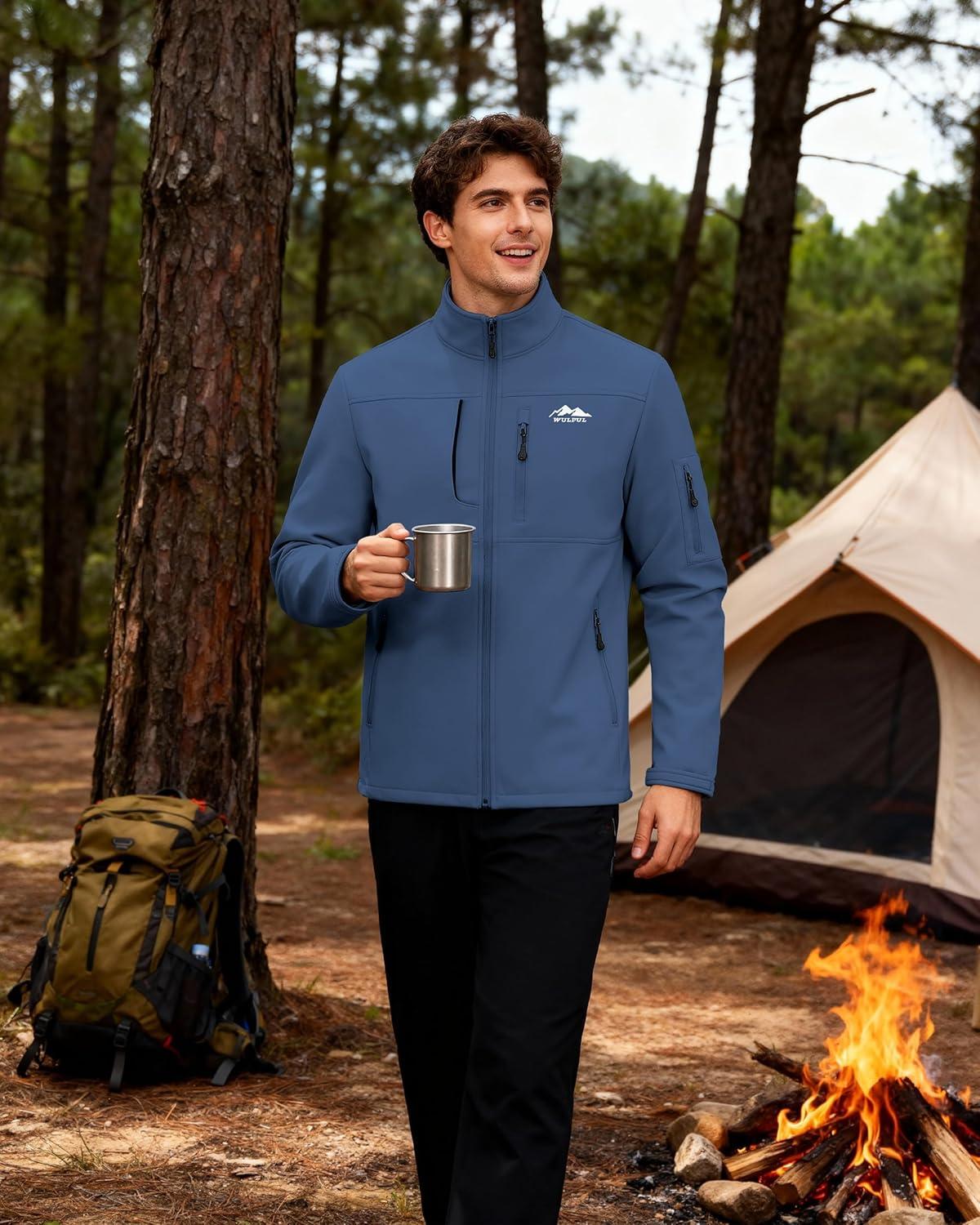 WULFUL Men’s Lightweight Softshell Jacket Warm Fleece Lined Windbreaker Waterproof Rain Jacket for Winter Outdoor Hiking(Royal Blue)
