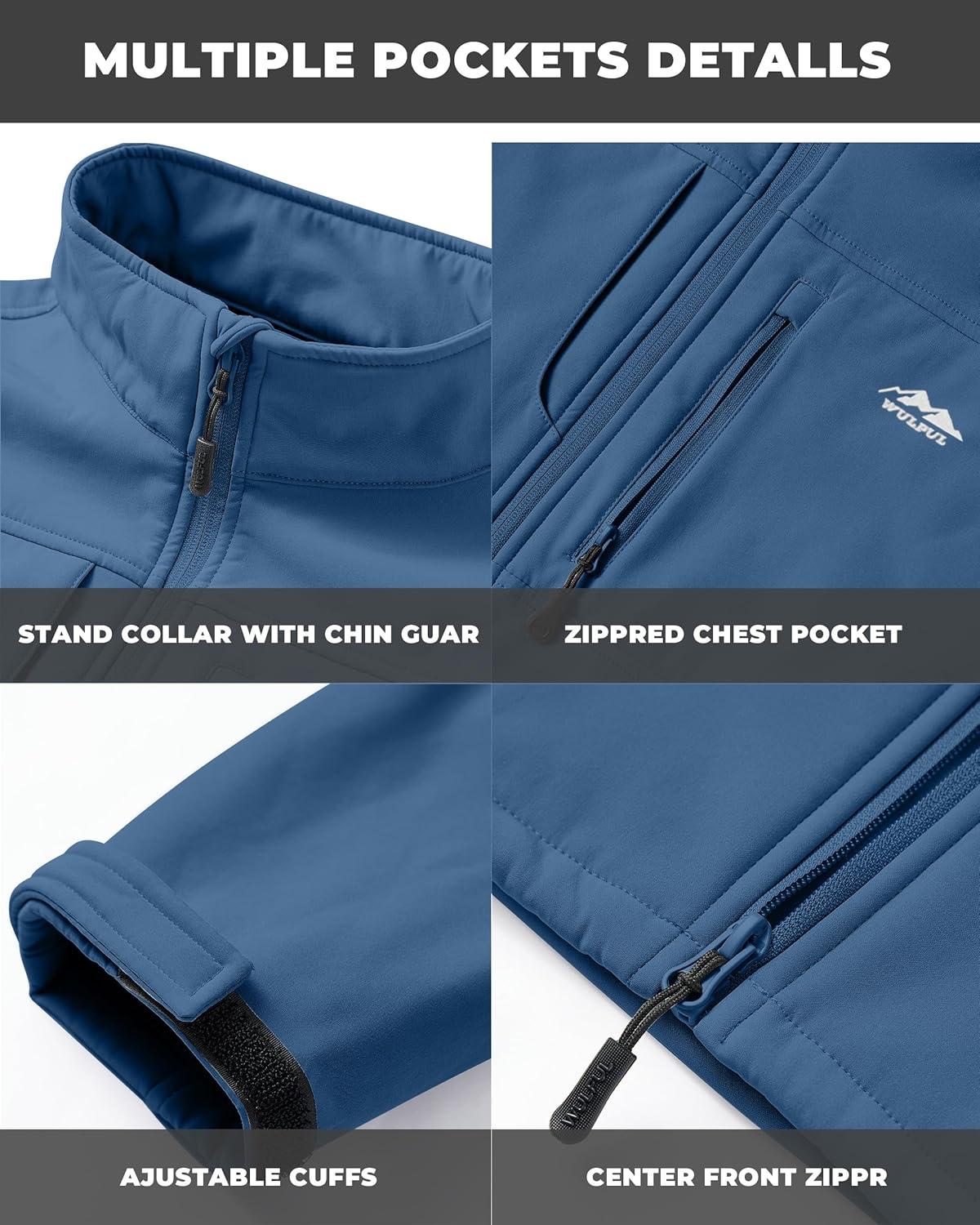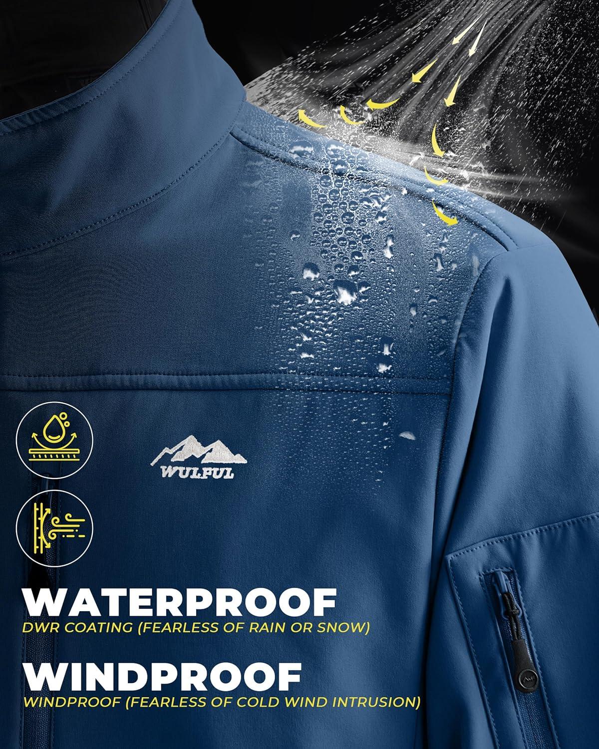 imageWULFUL Mens Lightweight Softshell Jacket Warm Fleece Lined Windbreaker Waterproof Rain Jacket for Winter Outdoor HikingRoyal Blue