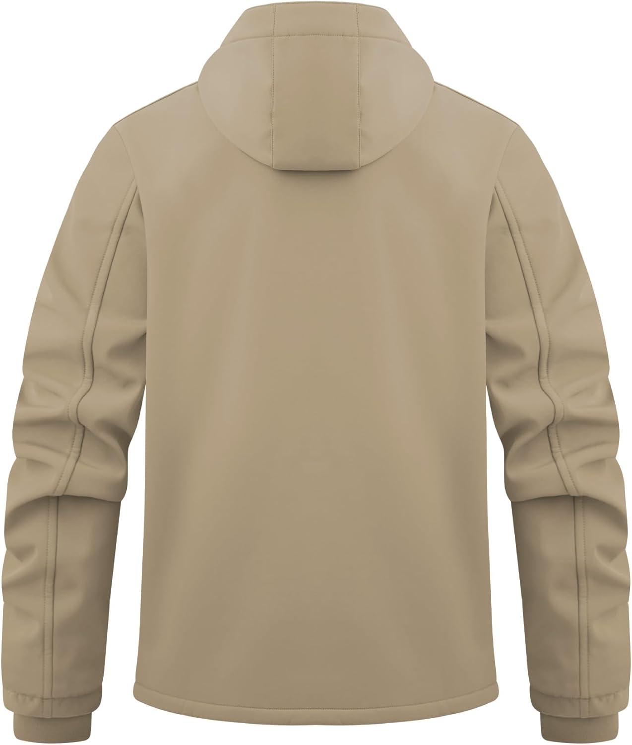 WULFUL Men's Lightweight Softshell Jacket Warm Fleece Lined Windbreaker Waterproof Soft Shell for Outdoor Hiking(Khaki)