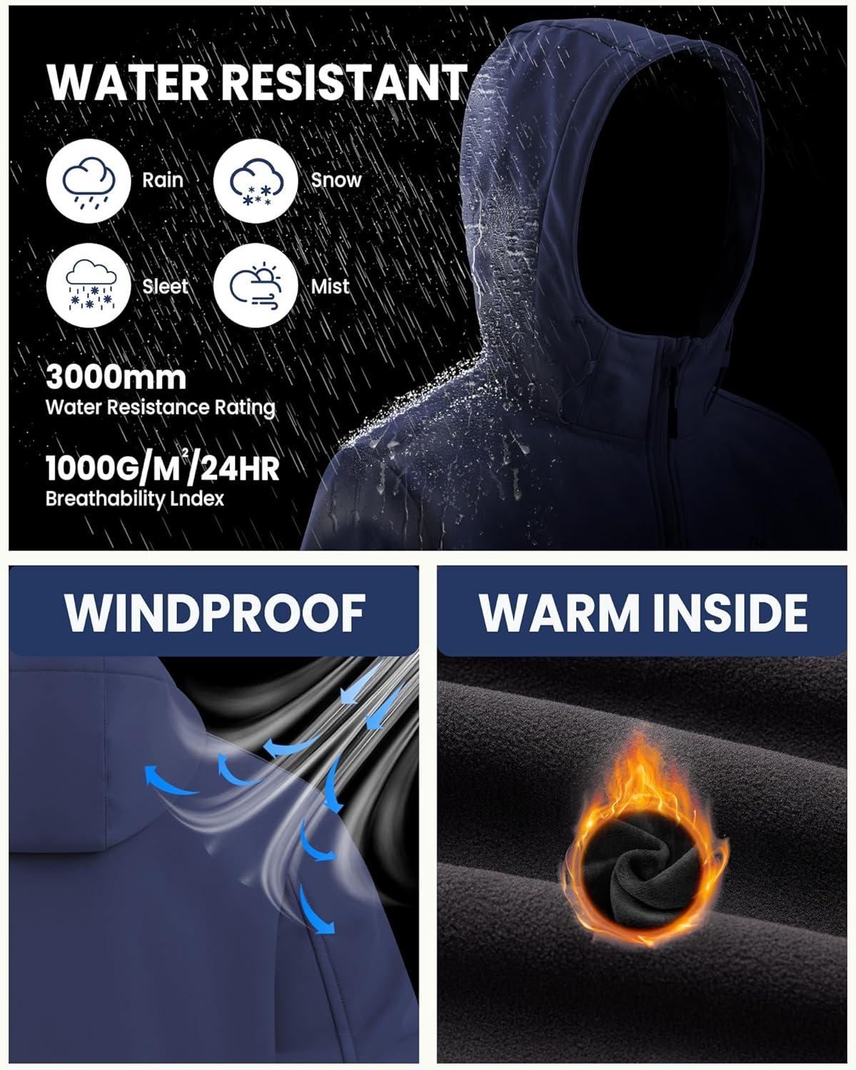 imageWULFUL Mens Lightweight Softshell Jacket Warm Fleece Lined Windbreaker Waterproof Soft Shell for Outdoor HikingNavy