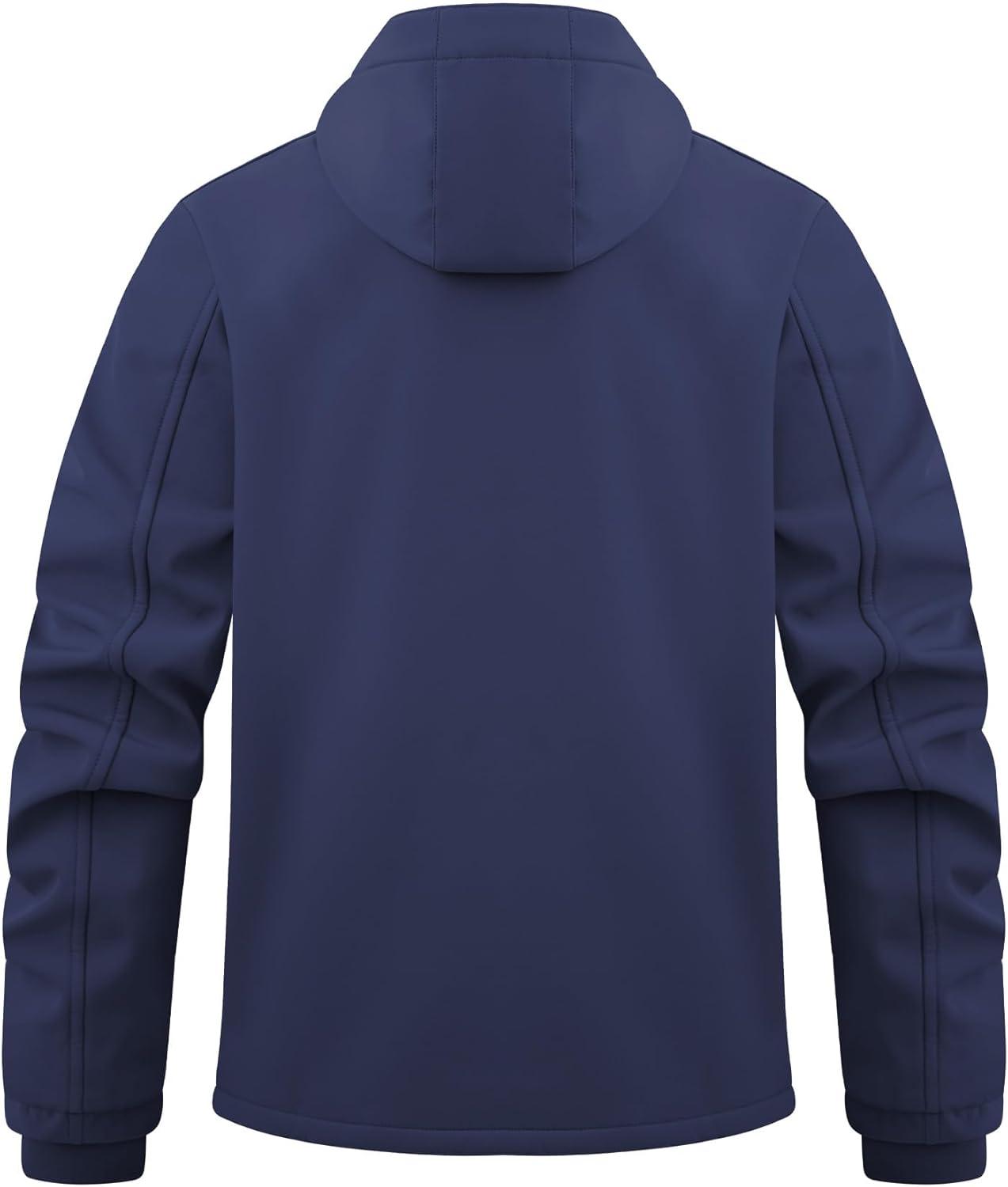 WULFUL Men's Lightweight Softshell Jacket Warm Fleece Lined Windbreaker Waterproof Soft Shell for Outdoor Hiking(Navy)