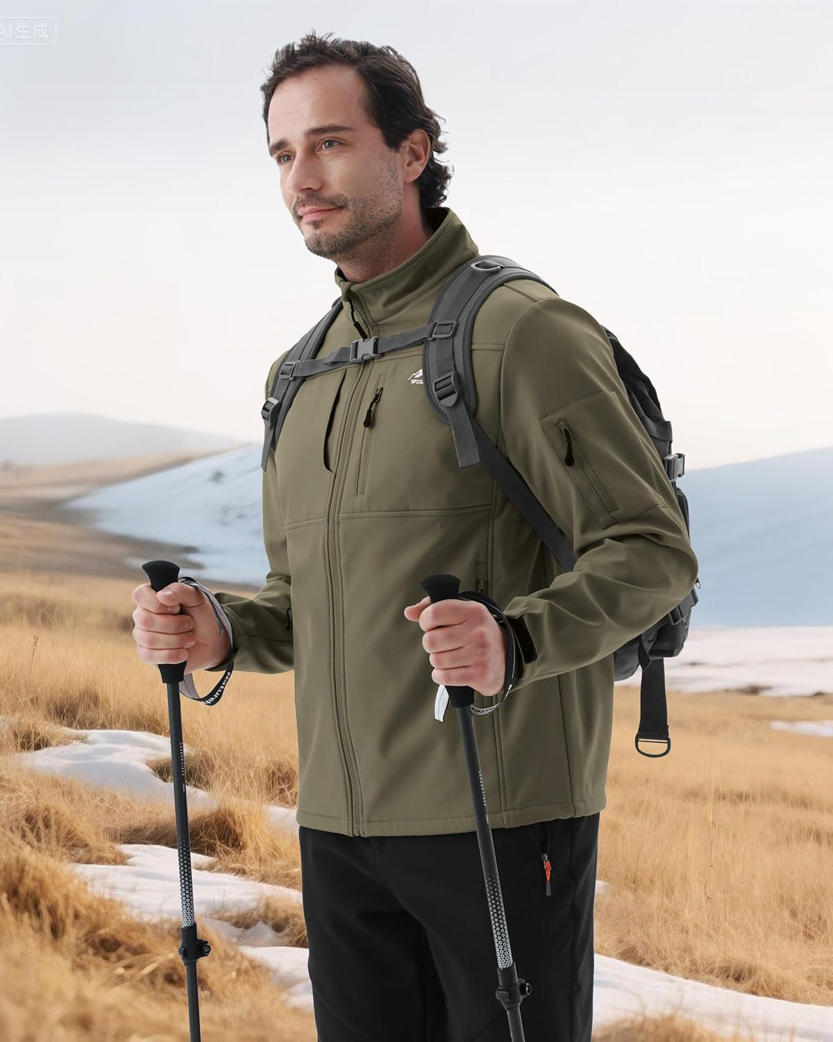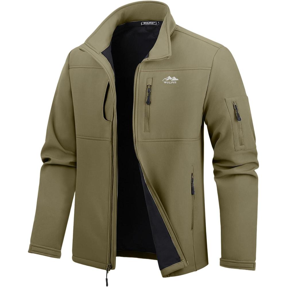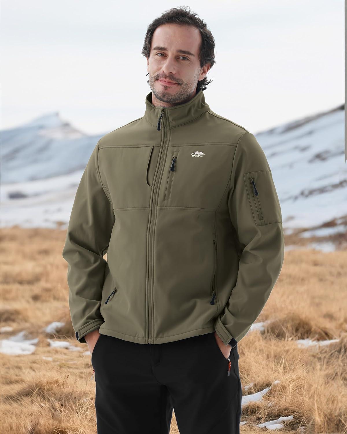 imageWULFUL Mens Lightweight Softshell Jacket Warm Fleece Lined Windbreaker Waterproof Soft Shell OutdoorArmy Green