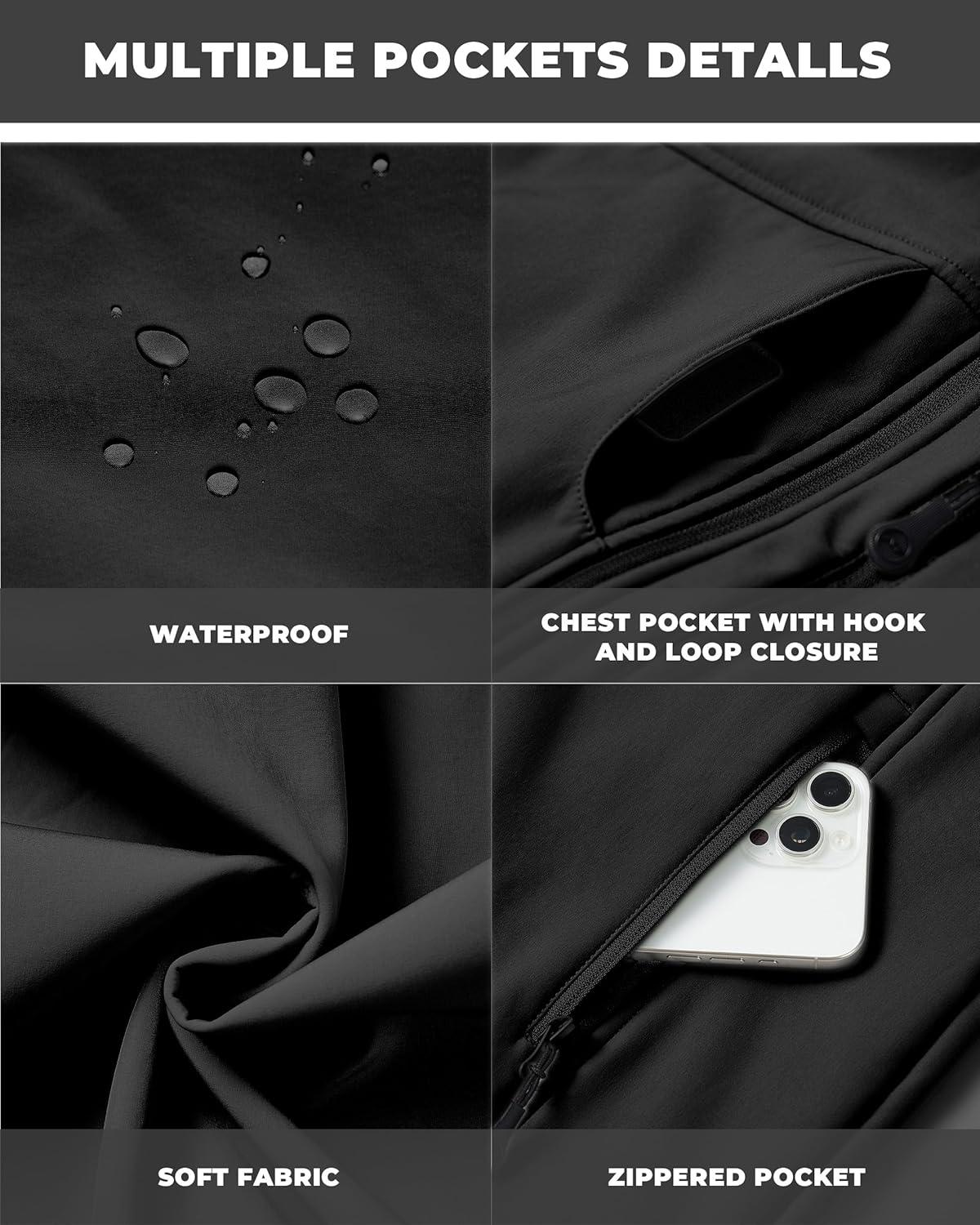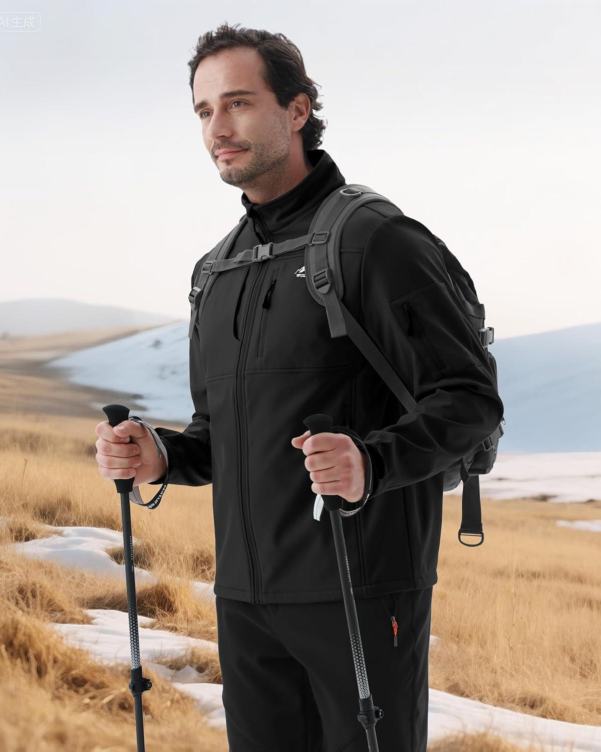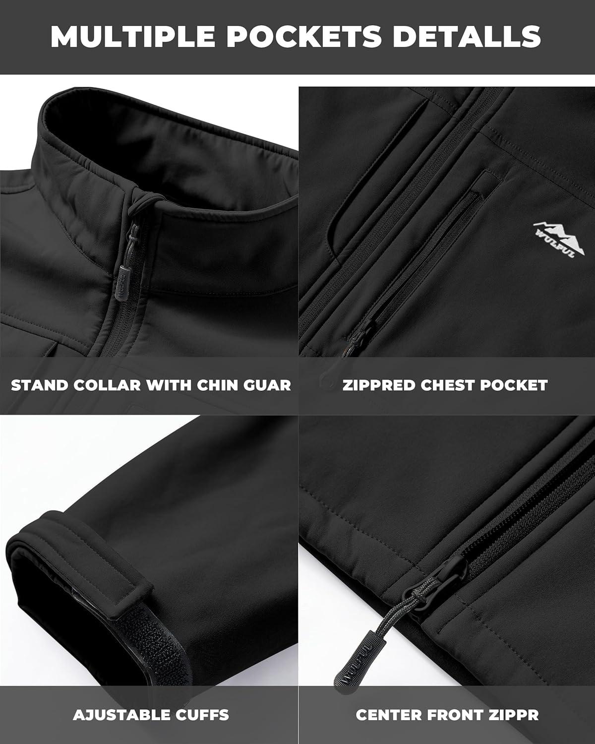 imageWULFUL Mens Lightweight Softshell Jacket Warm Fleece Lined Windbreaker Waterproof Soft Shell OutdoorBlack