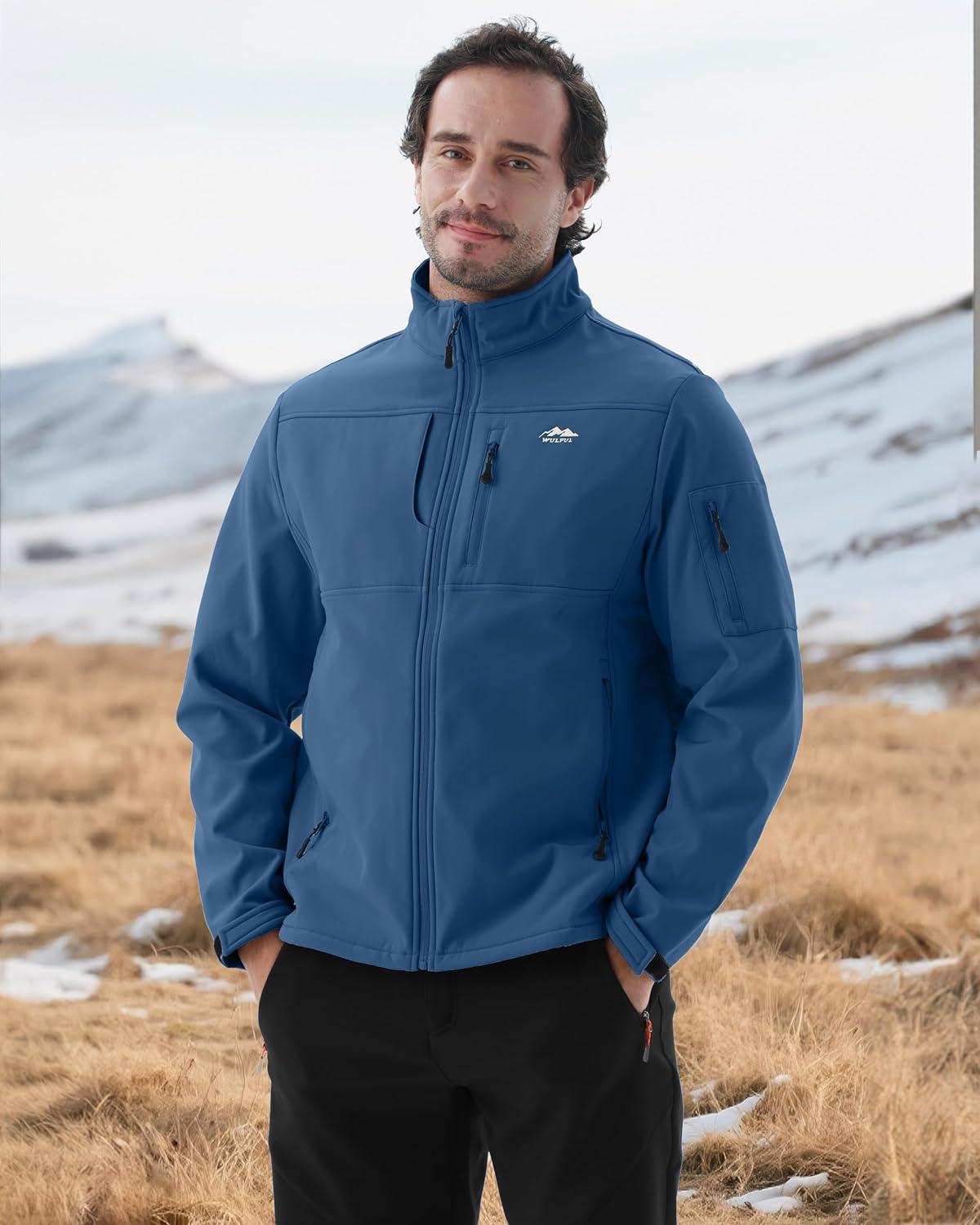 WULFUL Men’s Lightweight Softshell Jacket Warm Fleece Lined Windbreaker Waterproof Soft Shell Outdoor(Royal Blue)