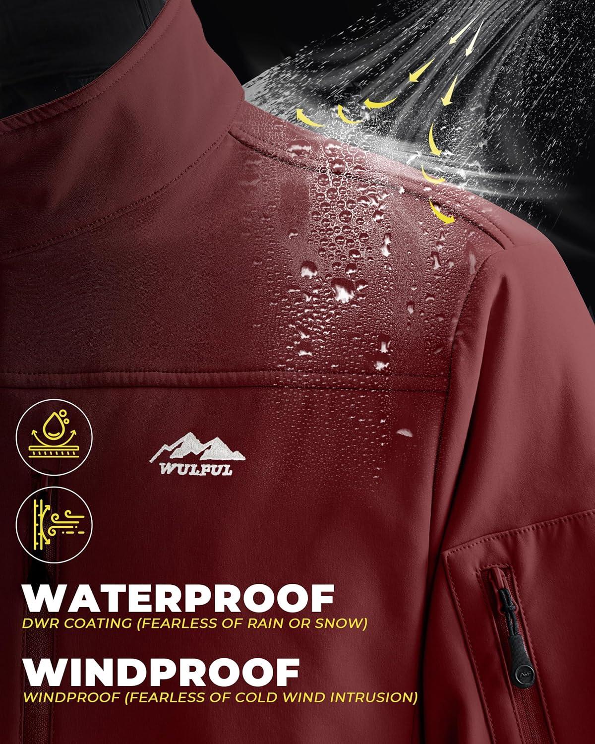 imageWULFUL Mens Lightweight Softshell Jacket Warm Fleece Lined Windbreaker Waterproof Soft Shell OutdoorWine Red