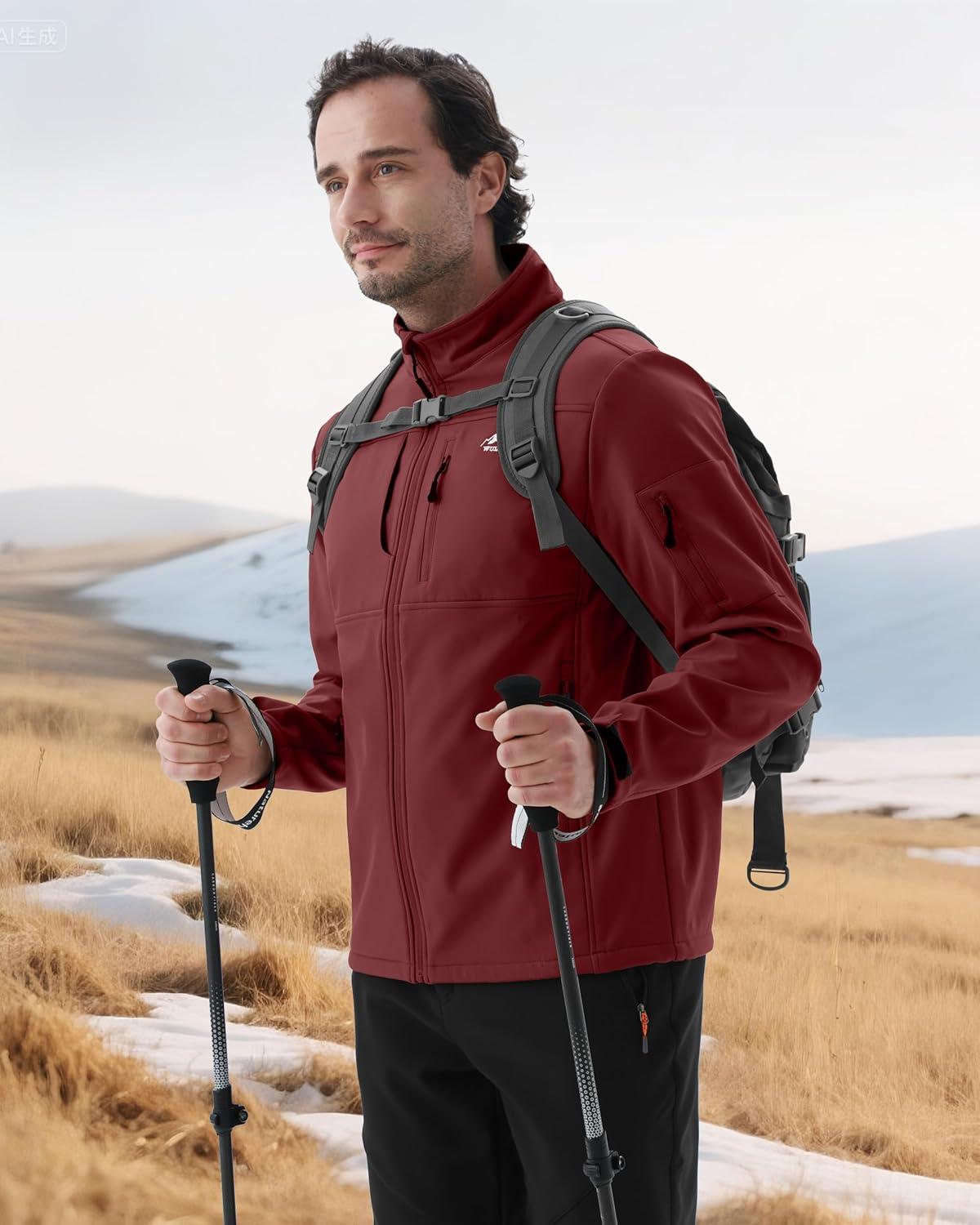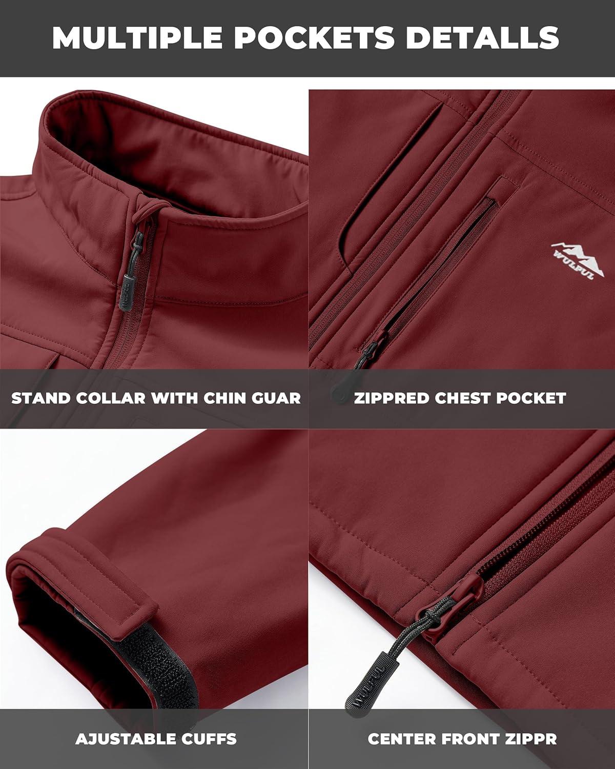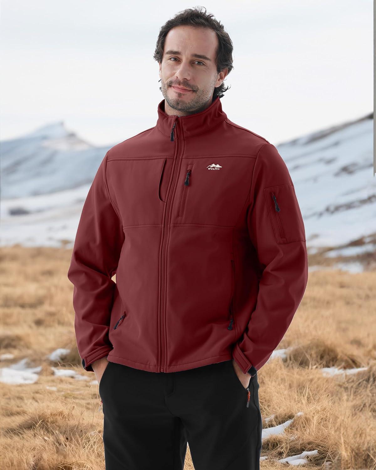 WULFUL Men’s Lightweight Softshell Jacket Warm Fleece Lined Windbreaker Waterproof Soft Shell Outdoor(Wine Red)