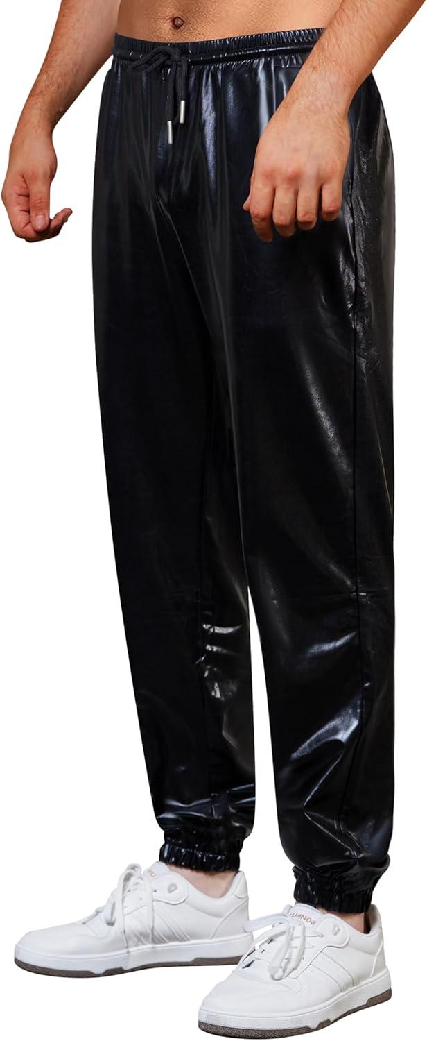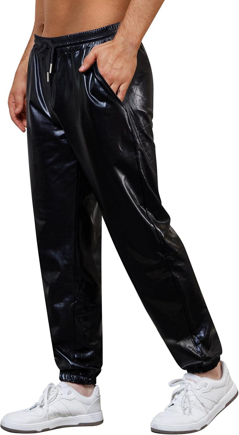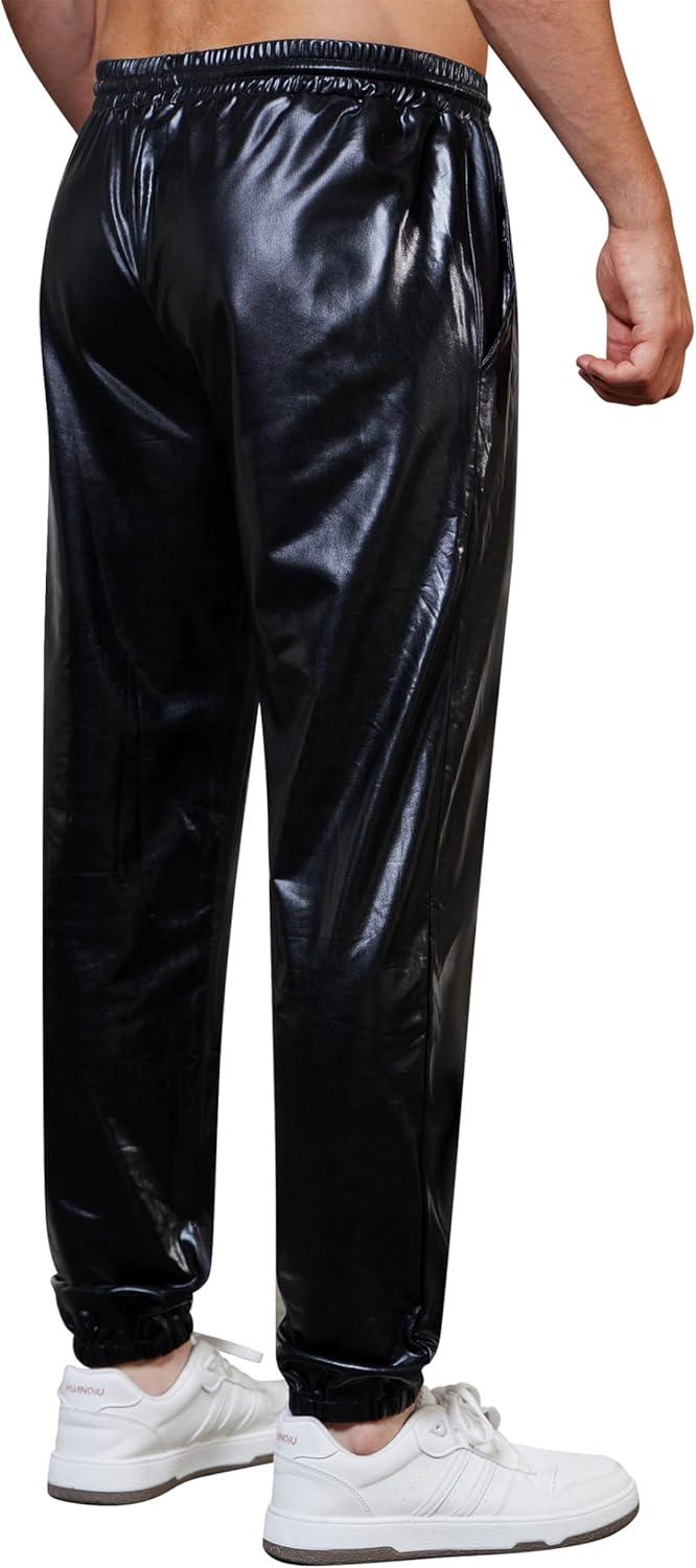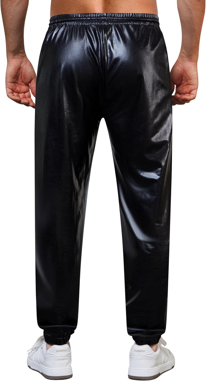 WULFUL Mens Metallic 70s Disco Costume Sequin Party Jogger Pants(Metallic-black)
