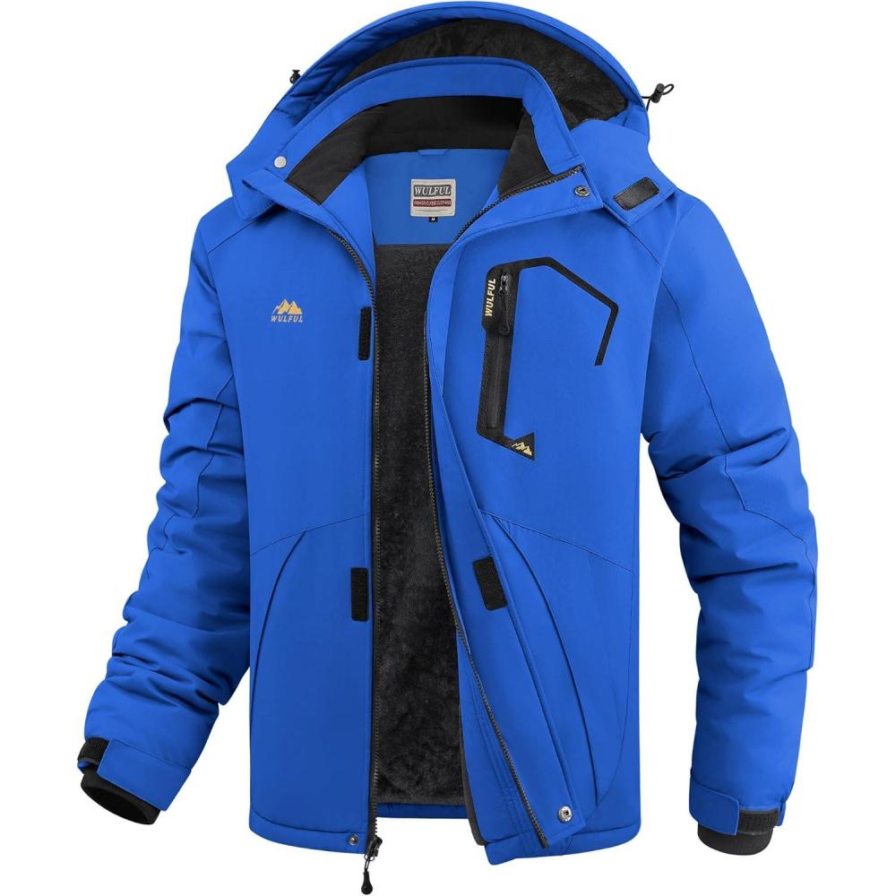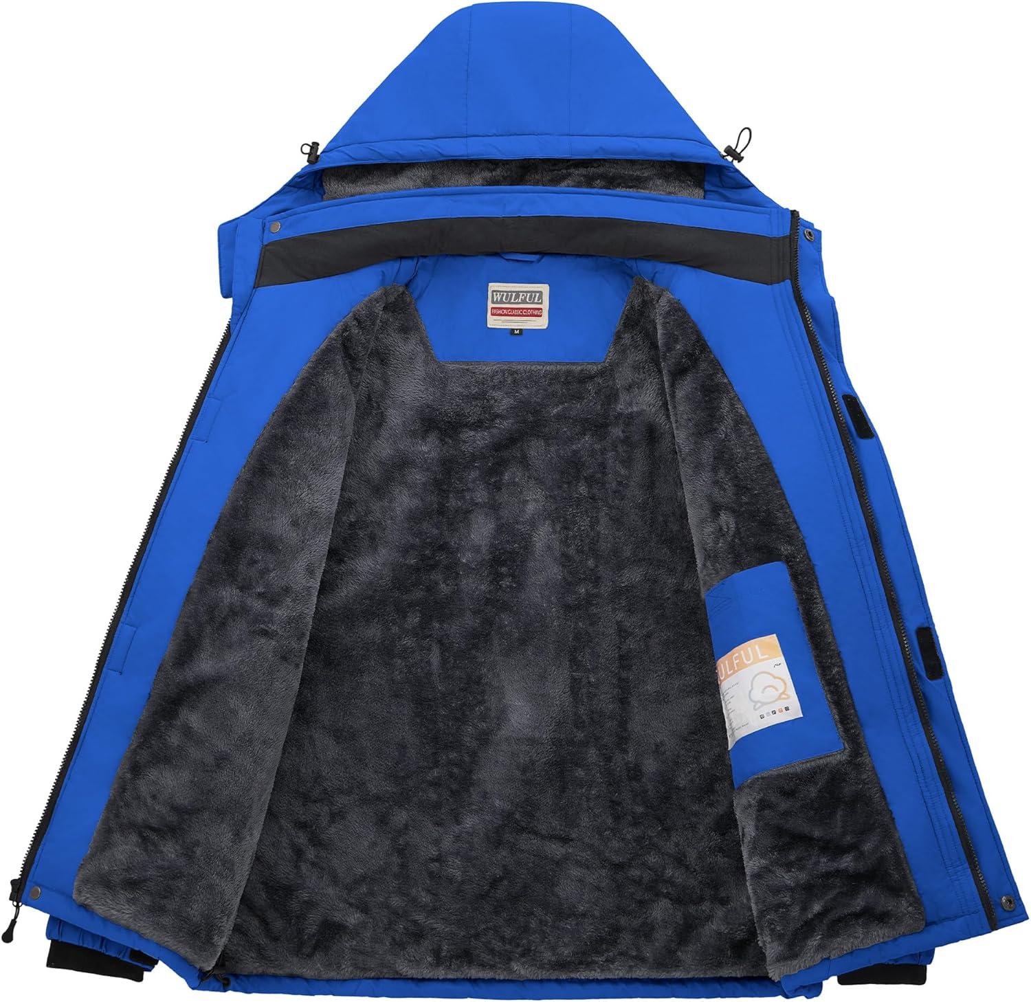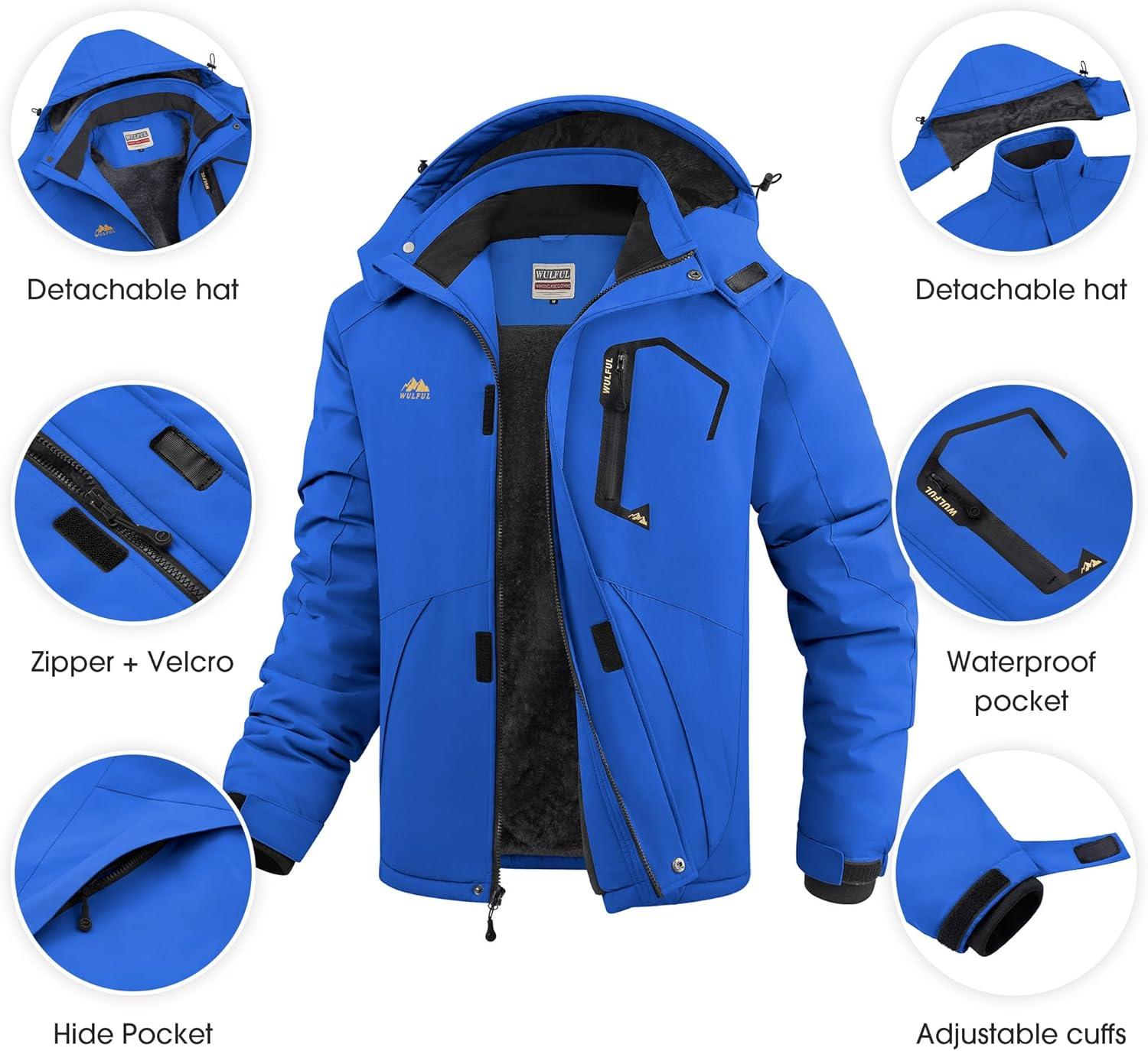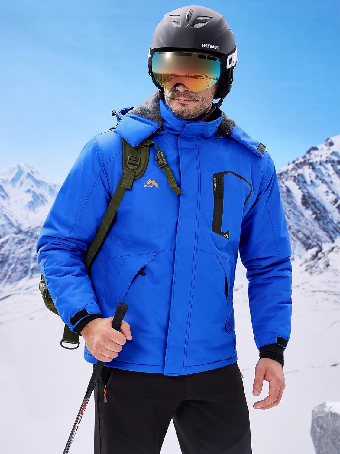 WULFUL Men's Ski Jackets Warm Winter Snow Windbreaker Resistant Snowboard Fleece Coat Mountain Waterproof Parka with Hood Blue Large