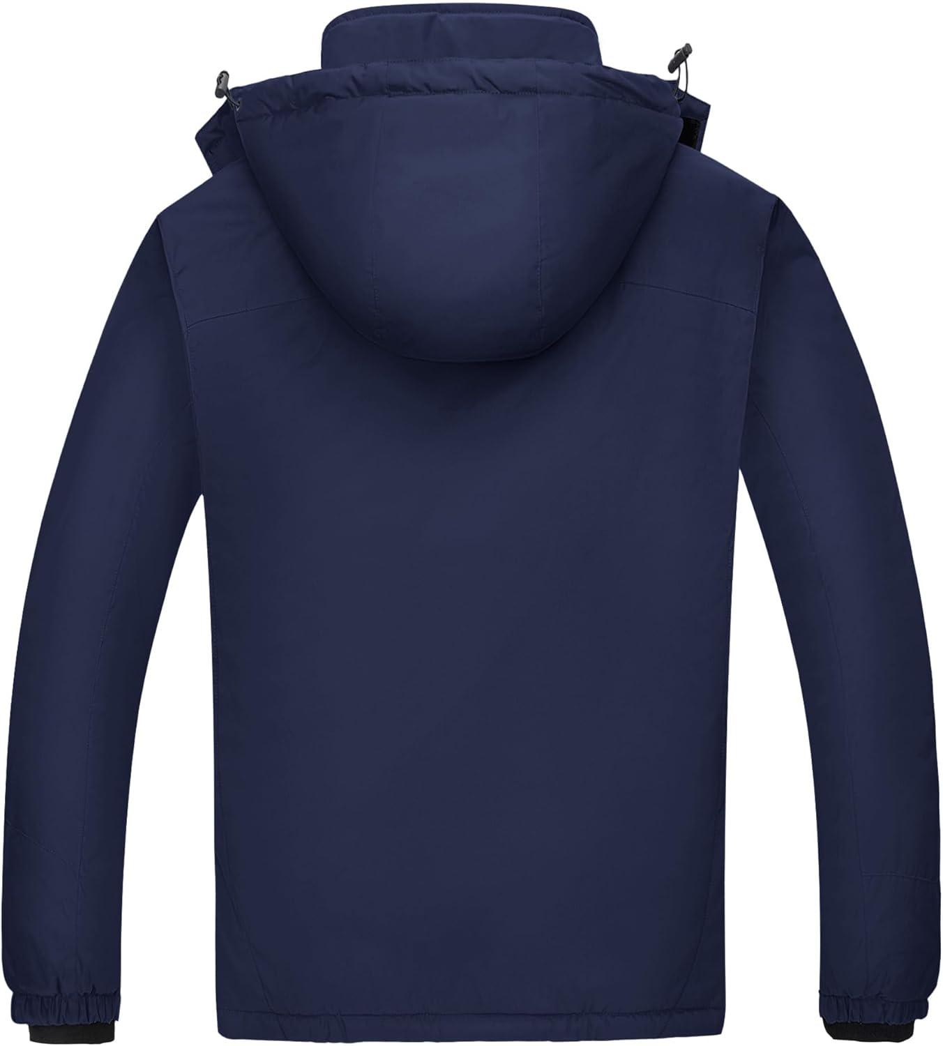 WULFUL Men’s Ski Jackets Warm Winter Snow Windbreaker Resistant Snowboard Fleece Coat Mountain Waterproof Parka with Hood Navy Small