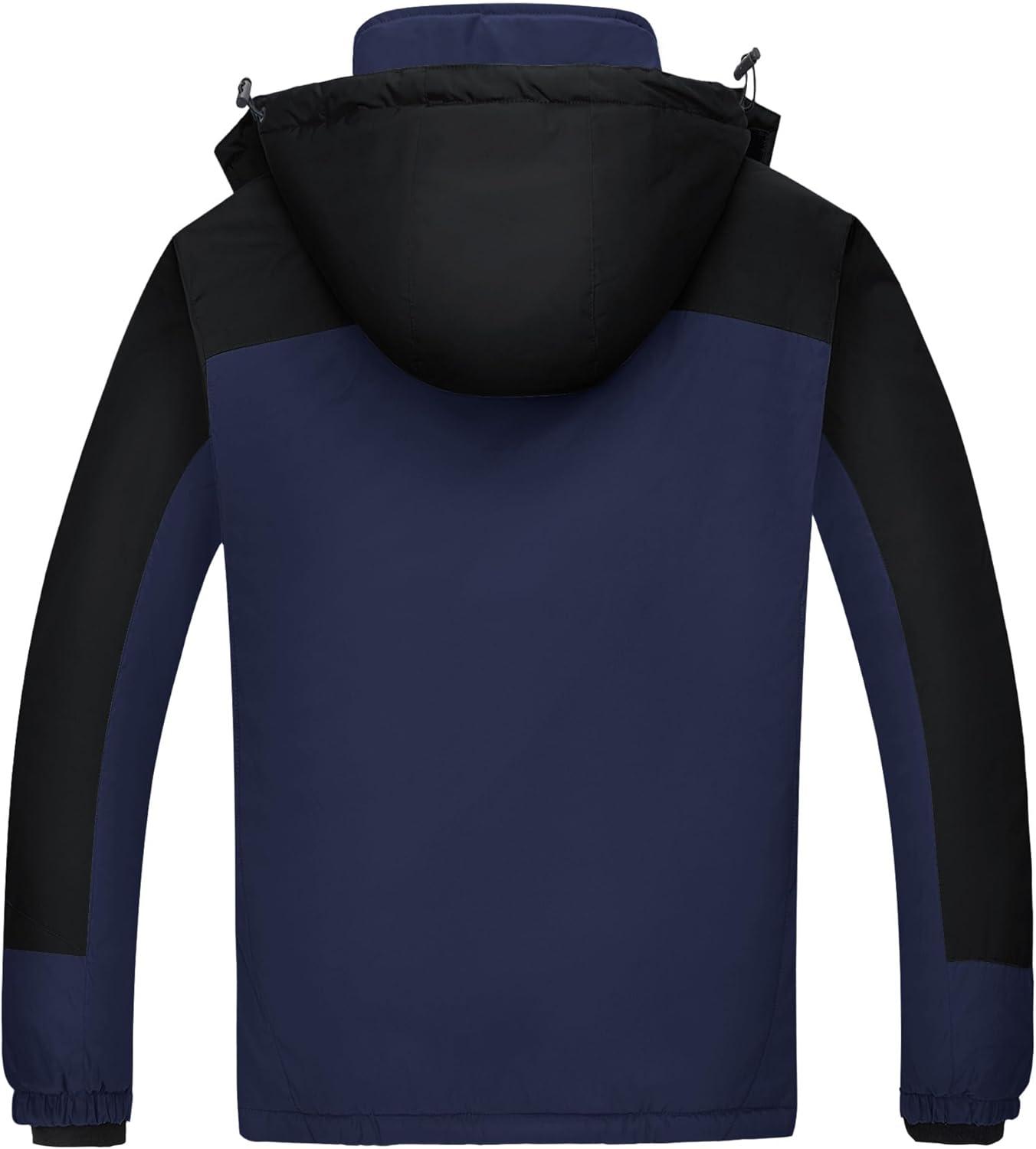 WULFUL Men's Ski Jackets Warm Winter Snow Windbreaker Resistant Snowboard Fleece Coat Mountain Waterproof Parka with Hood(Black-navy)