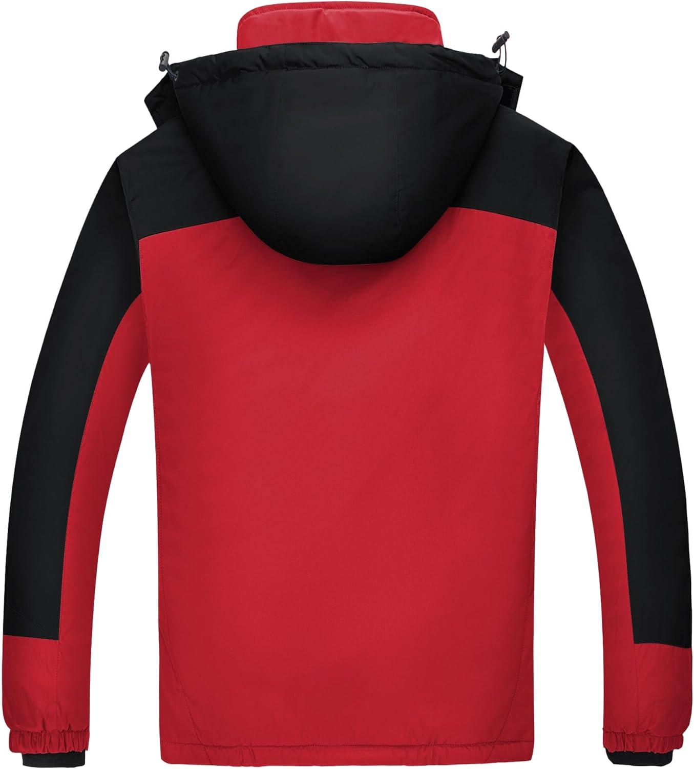 WULFUL Men's Ski Jackets Warm Winter Snow Windbreaker Resistant Snowboard Fleece Coat Mountain Waterproof Parka with Hood(Black-red)