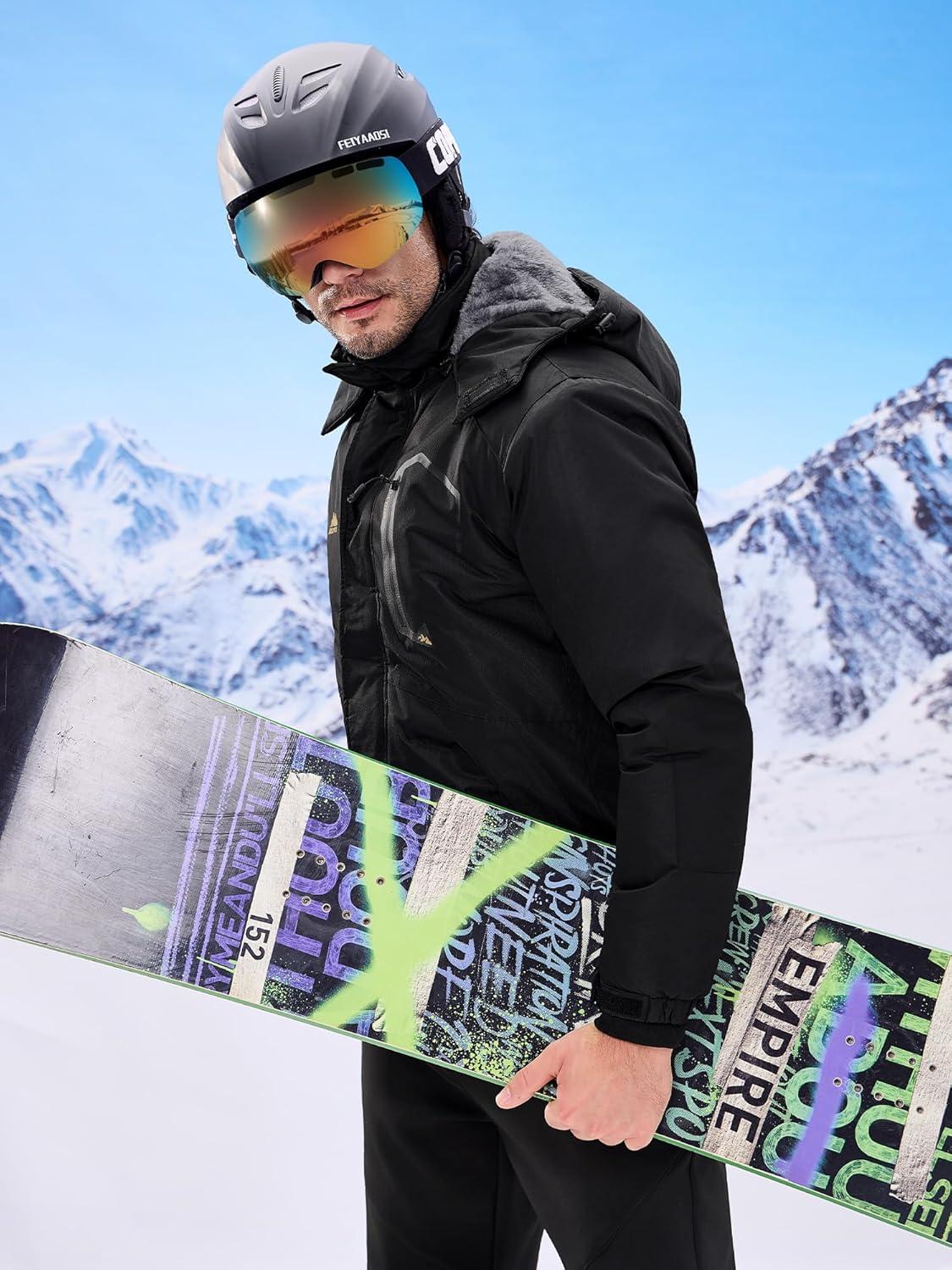 WULFUL Men's Ski Jackets Warm Winter Snow Windbreaker Resistant Snowboard Fleece Coat Mountain Waterproof Parka with Hood(Black)