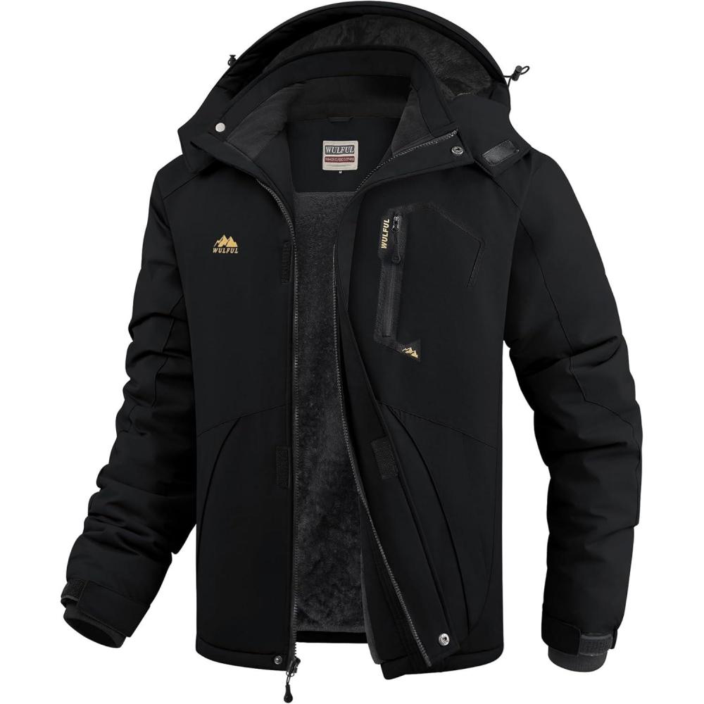 WULFUL Men’s Ski Jackets Warm Winter Snow Windbreaker Resistant Snowboard Fleece Coat Mountain Waterproof Parka with Hood(Black)
