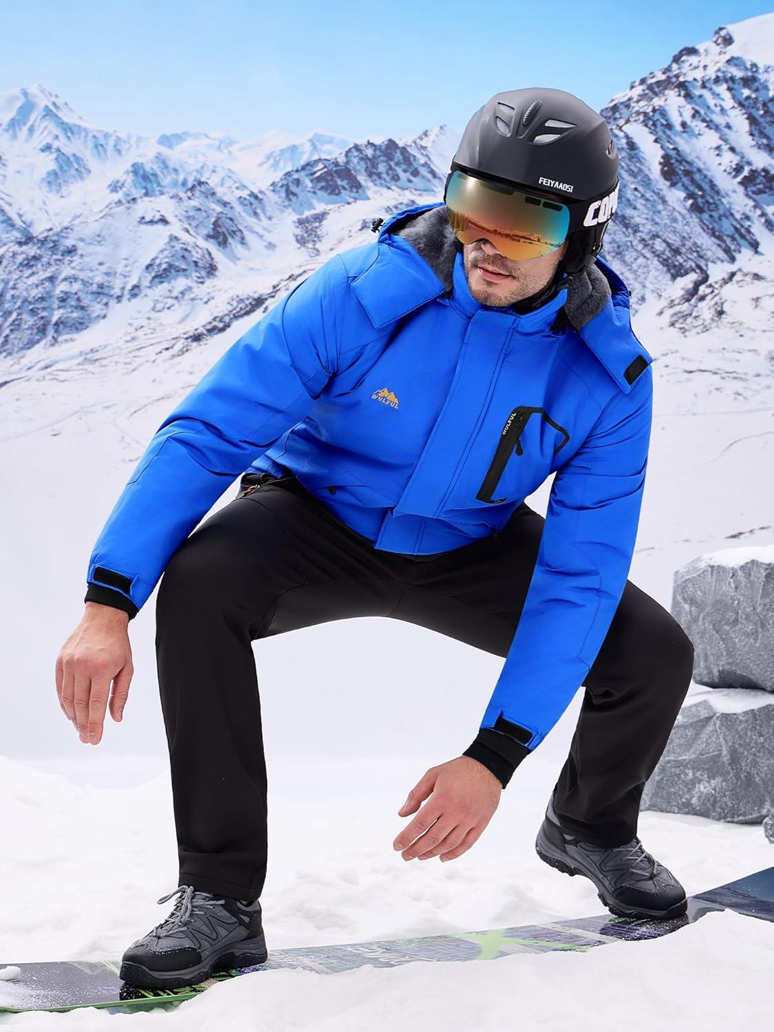 WULFUL Men's Ski Jackets Warm Winter Snow Windbreaker Resistant Snowboard Fleece Coat Mountain Waterproof Parka with Hood(Blue)