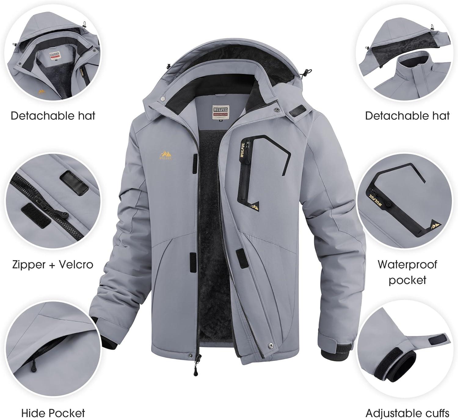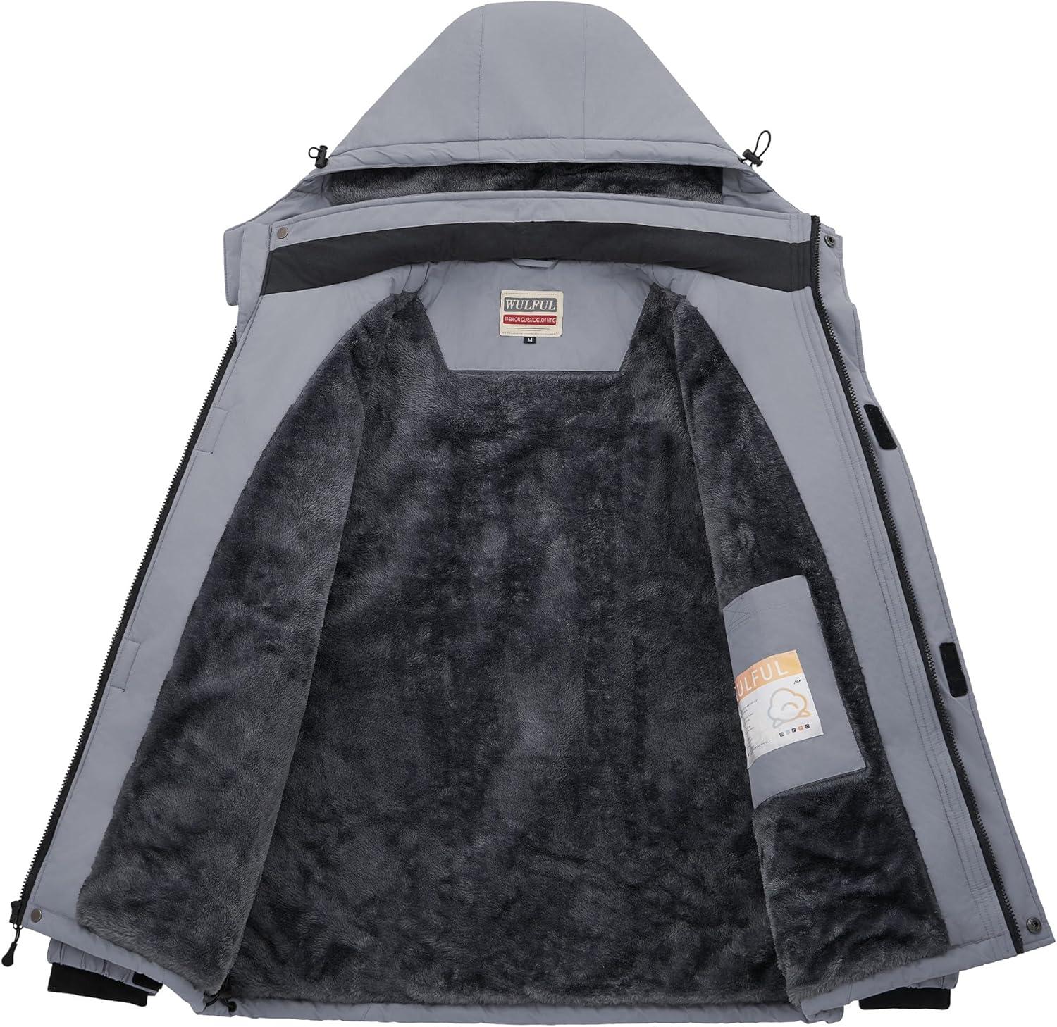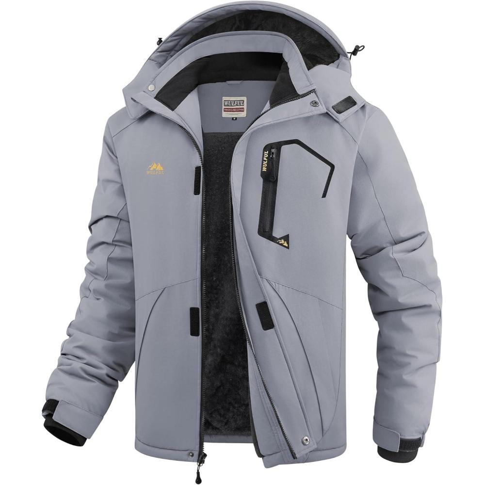 imageWULFUL Mens Ski Jackets Warm Winter Snow Windbreaker Resistant Snowboard Fleece Coat Mountain Waterproof Parka with HoodGray