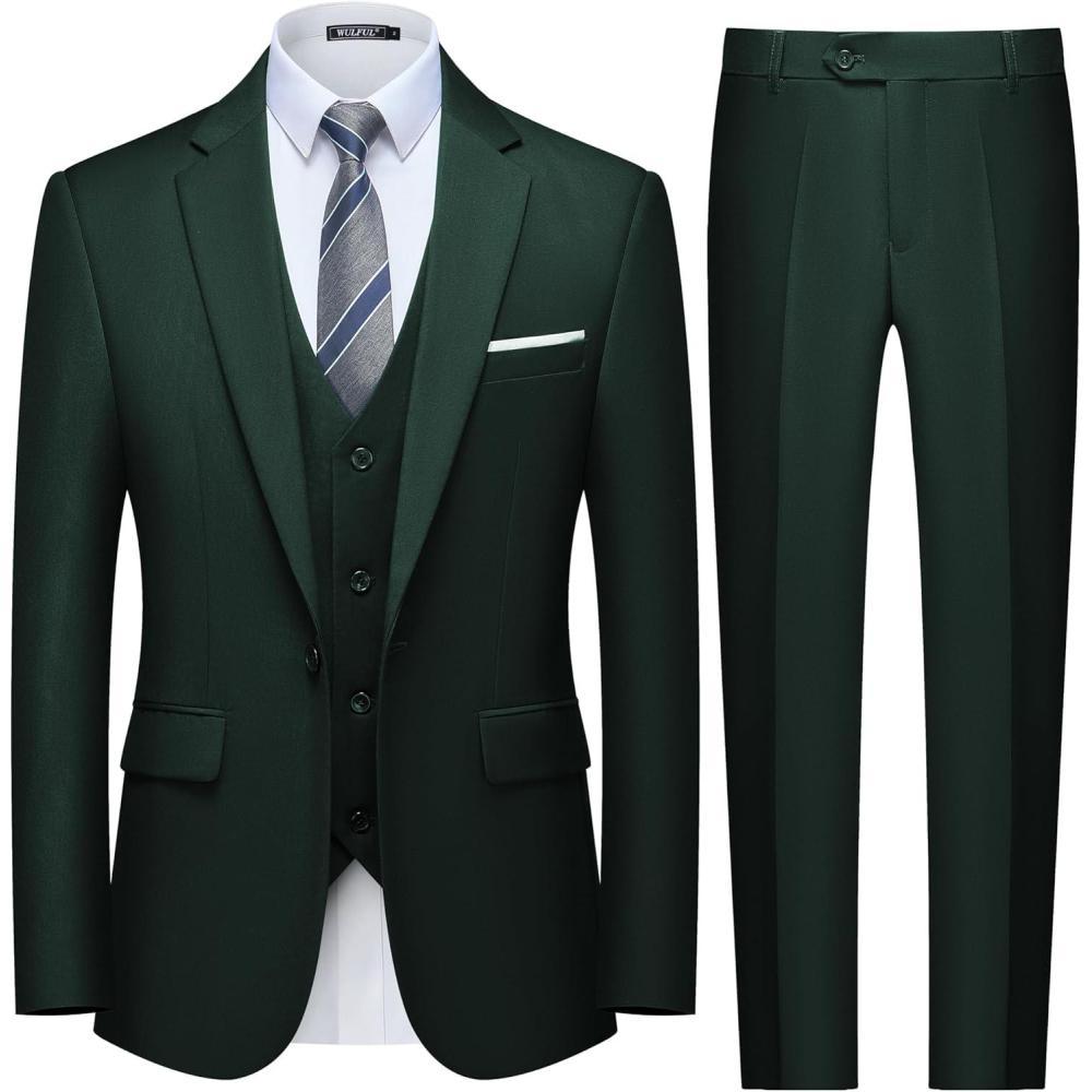 WULFUL Men's Slim Fit 3 Piece Suit, One Button Solid Blazer Business Party Jacket Vest Pants Set(Dark Green)