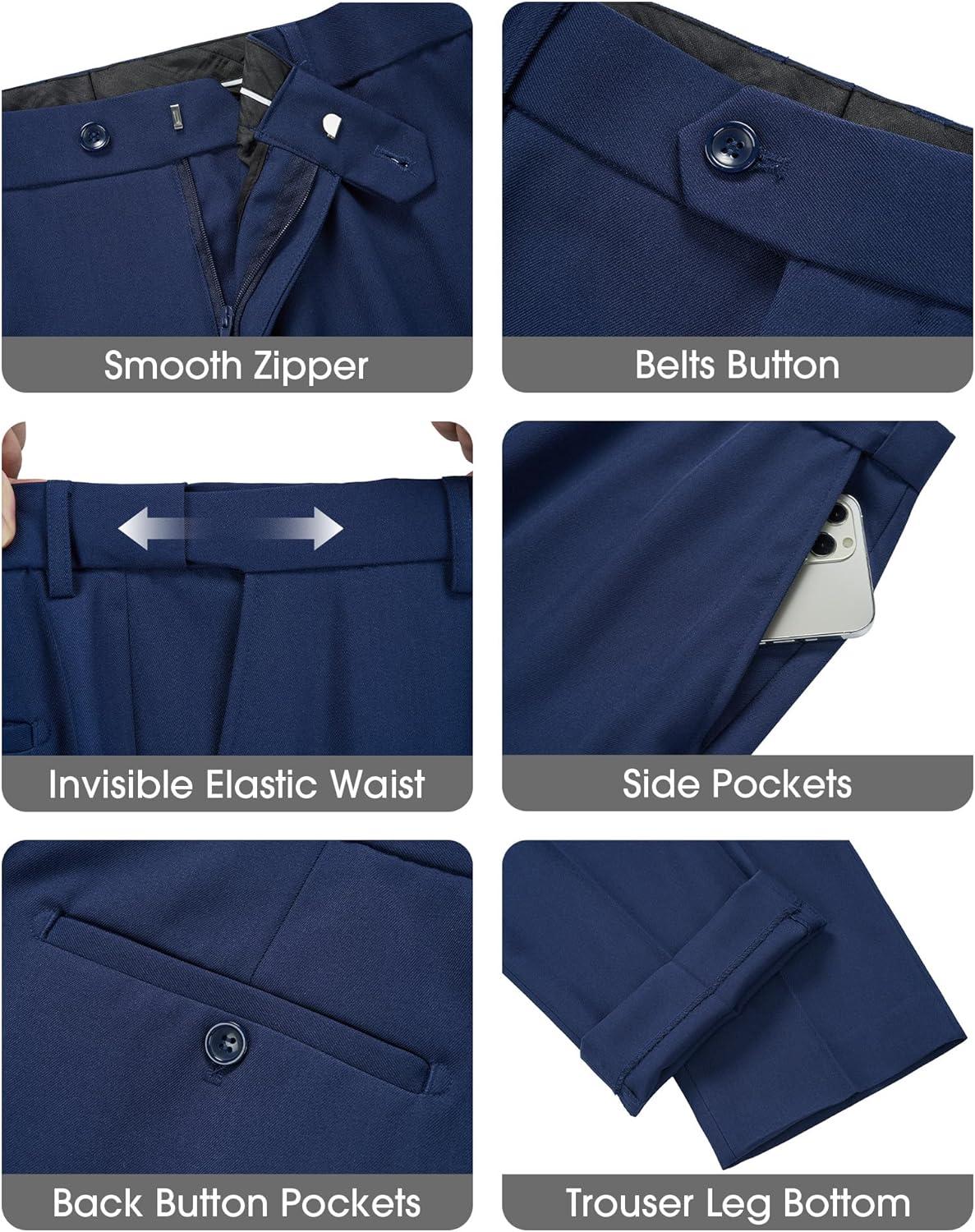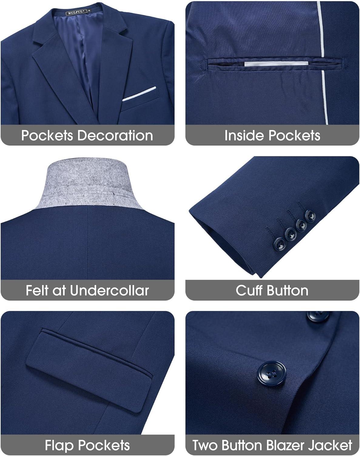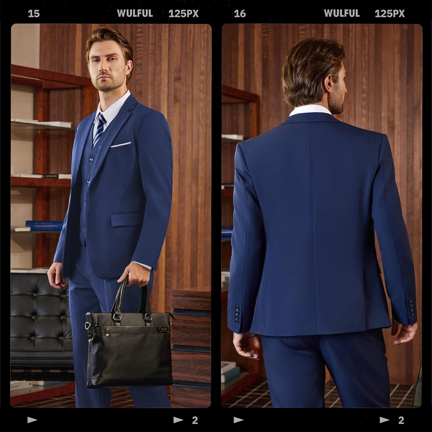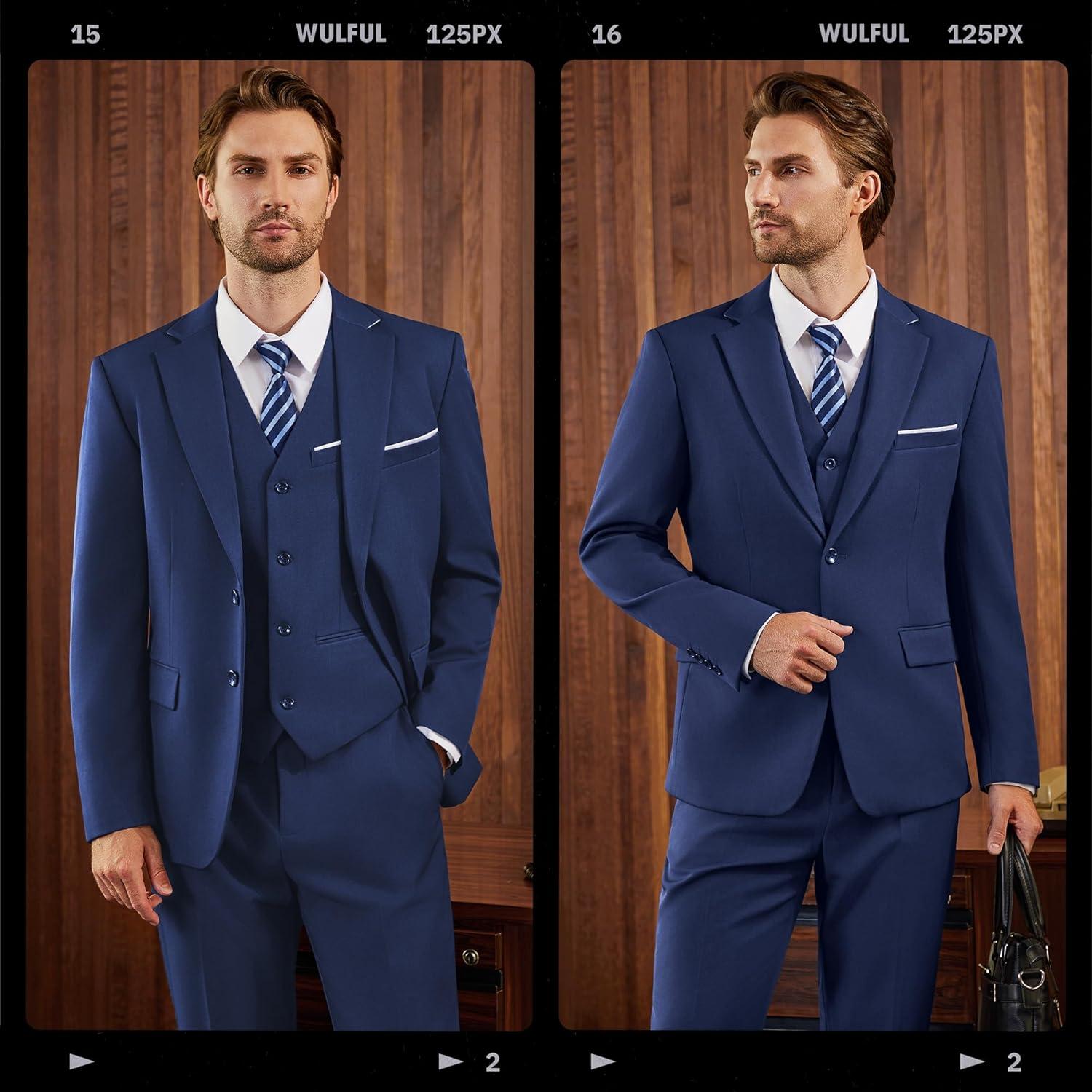 WULFUL Men's Slim Fit 3 Piece Suits Two Button Blazer Vest & Pants Tuxedo Set for Business Wedding Party(Navy)