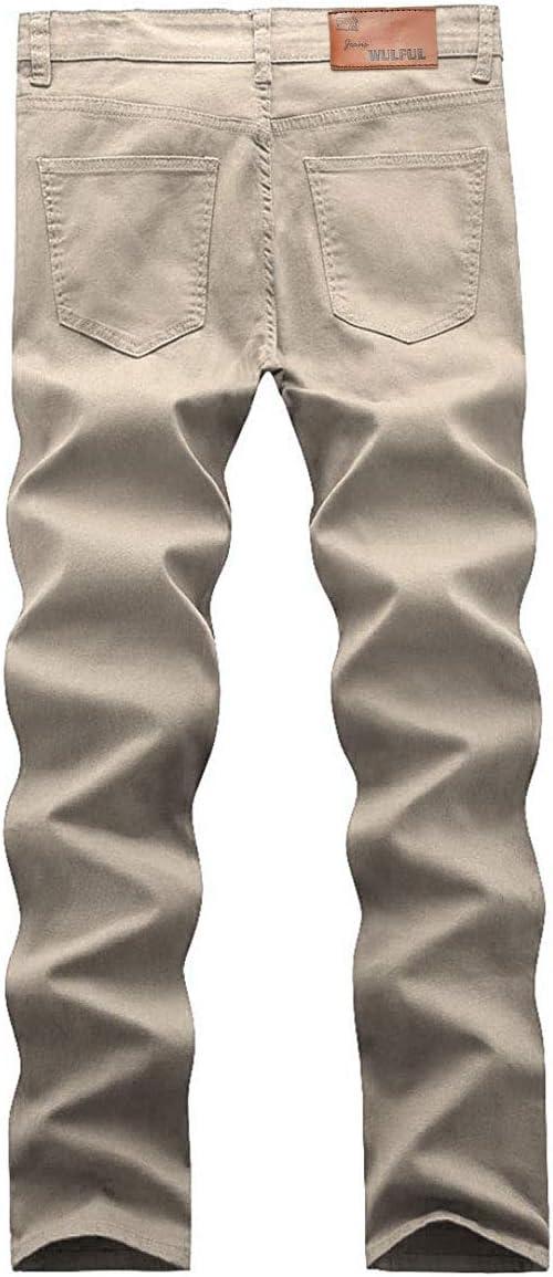 WULFUL Men’s Slim Fit Skinny Stretch Comfy Jeans Denim Pants(Beige)