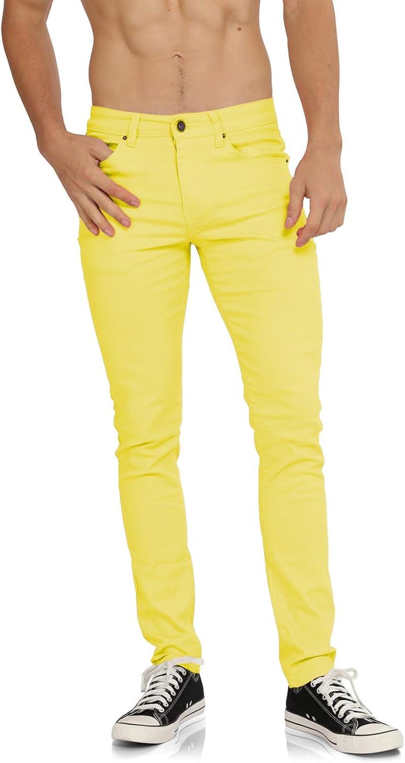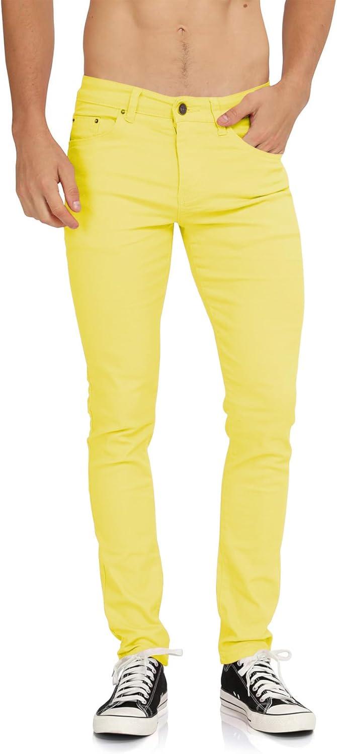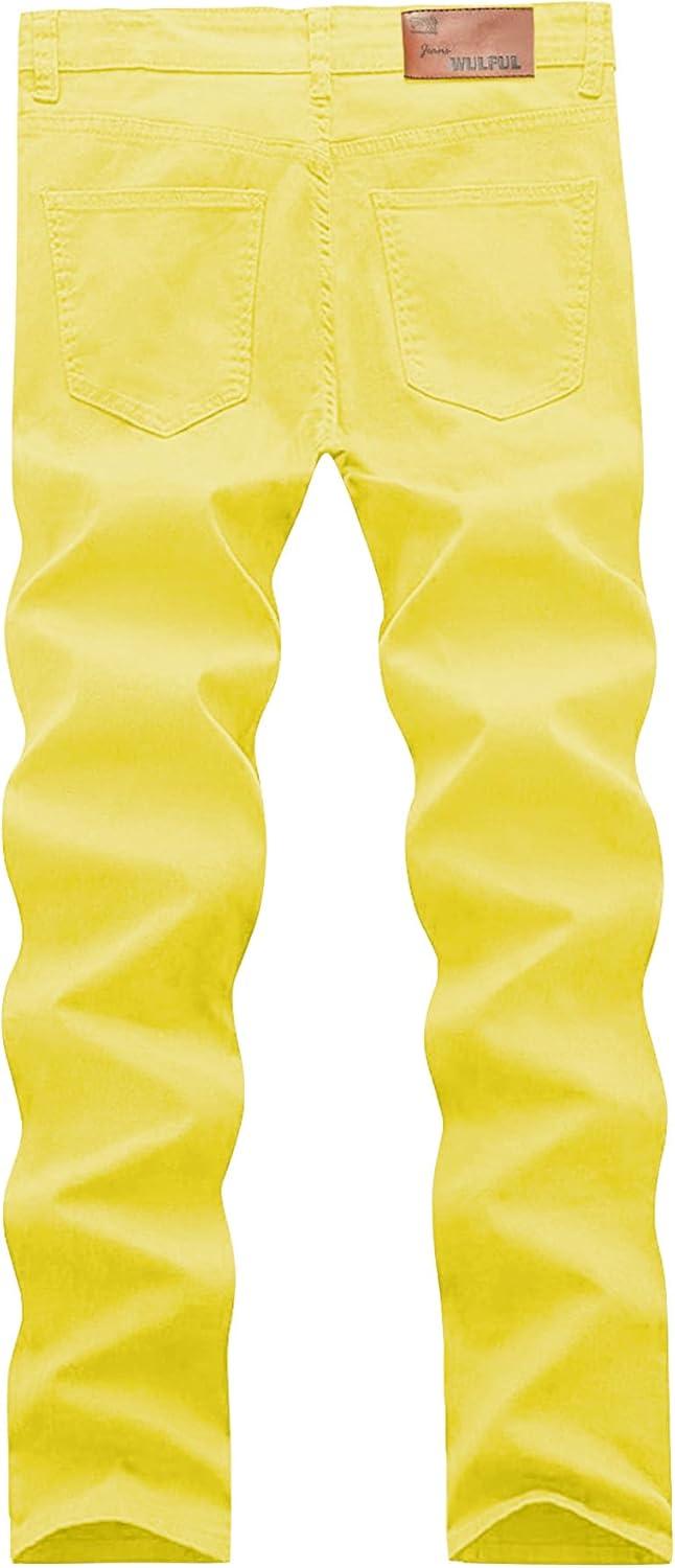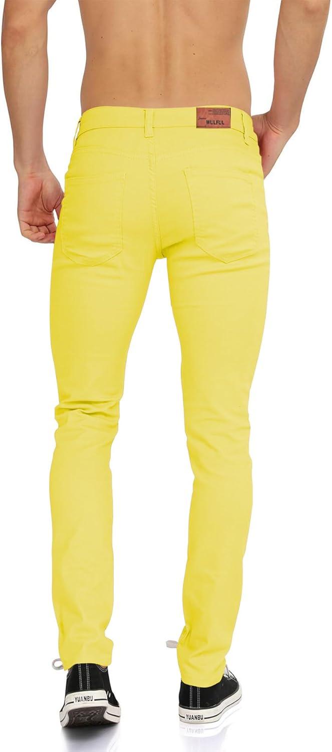 WULFUL Men’s Slim Fit Skinny Stretch Comfy Jeans Denim Pants(Bright Yellow)