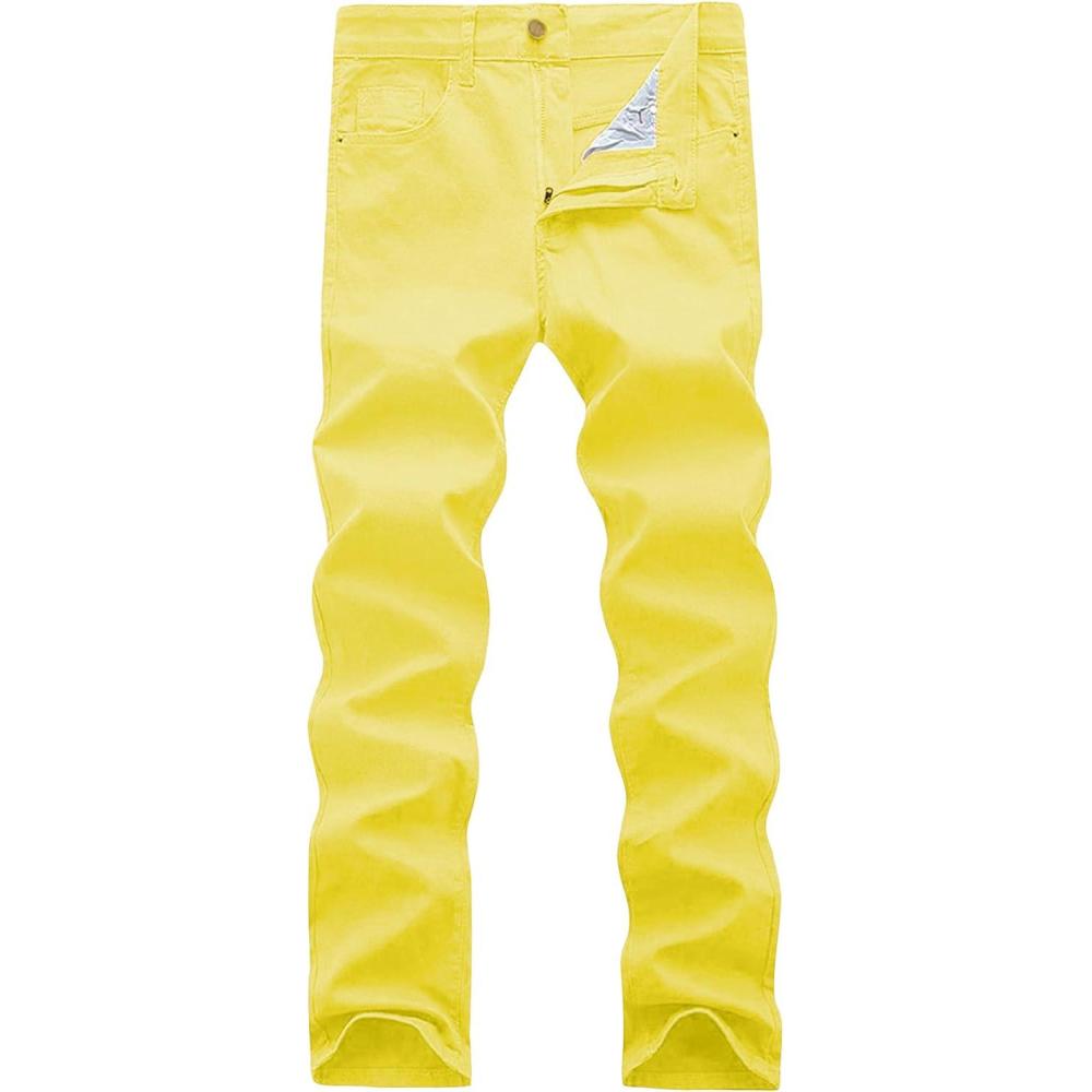WULFUL Men's Slim Fit Skinny Stretch Comfy Jeans Denim Pants(Bright Yellow)