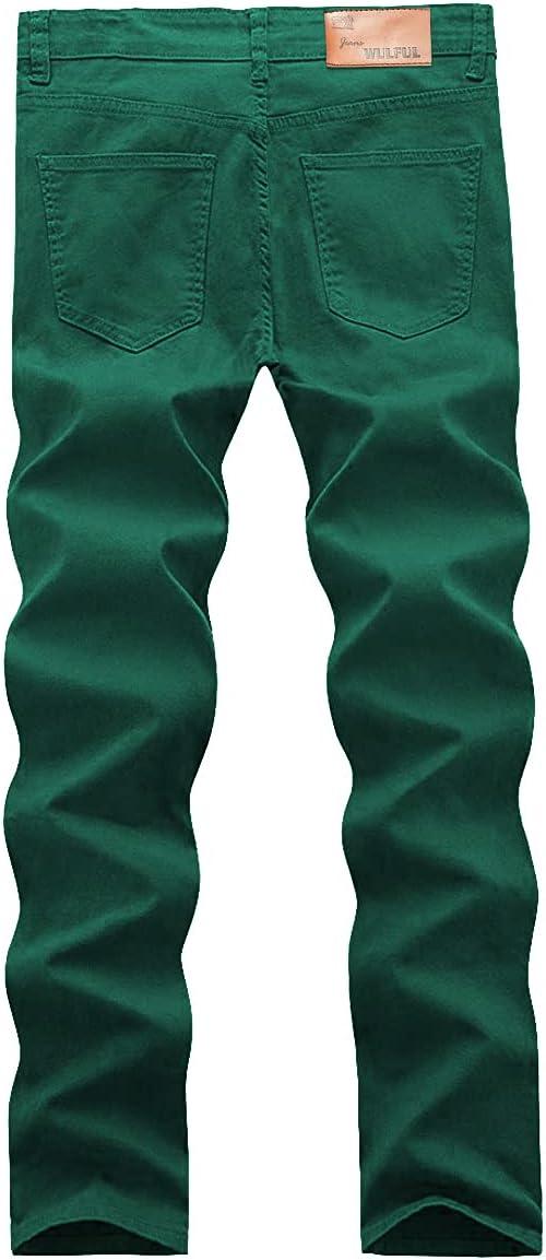 WULFUL Men’s Slim Fit Skinny Stretch Comfy Jeans Denim Pants(Dark Green01)