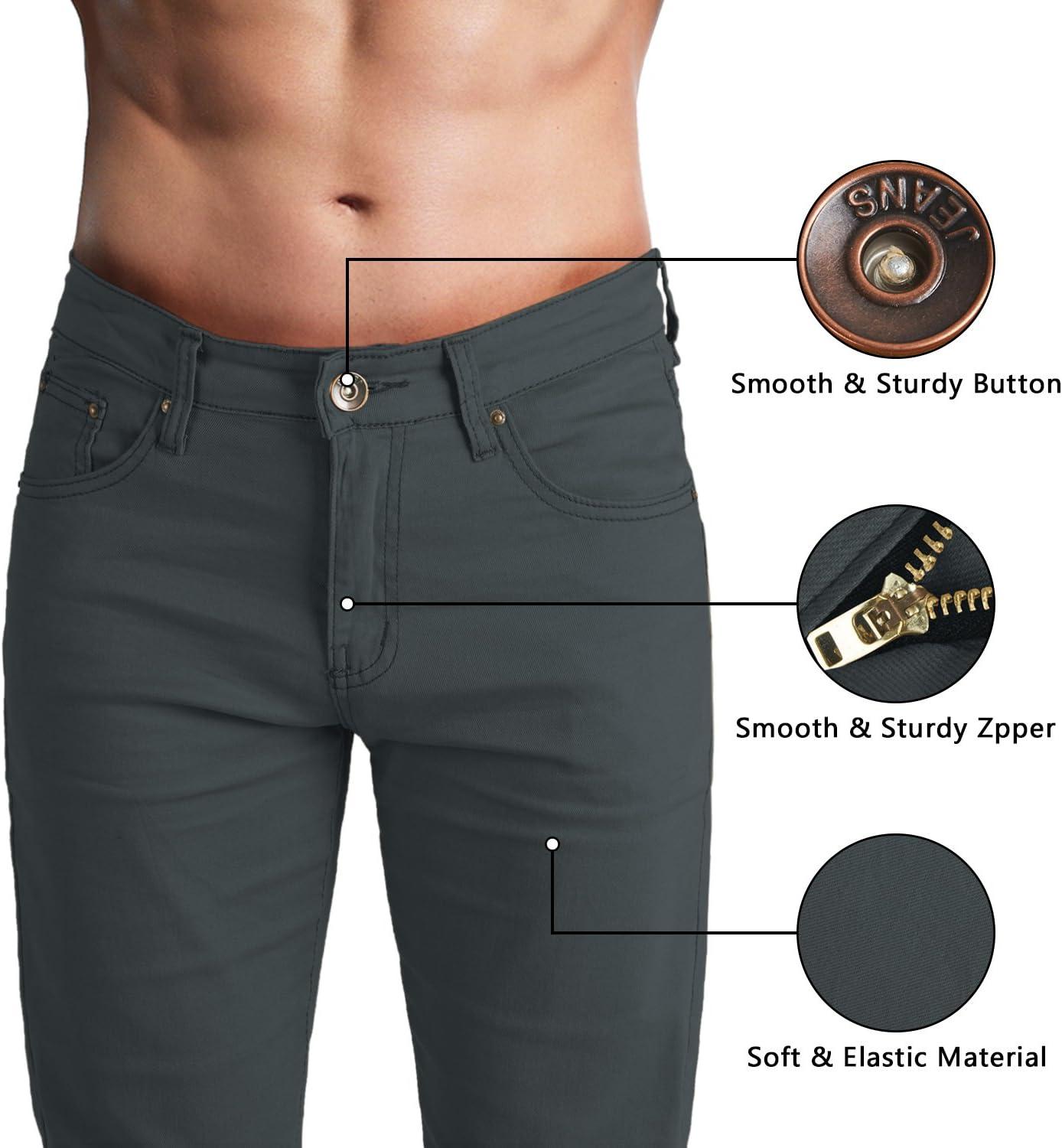 WULFUL Men’s Slim Fit Skinny Stretch Comfy Jeans Denim Pants(Dark Grey)