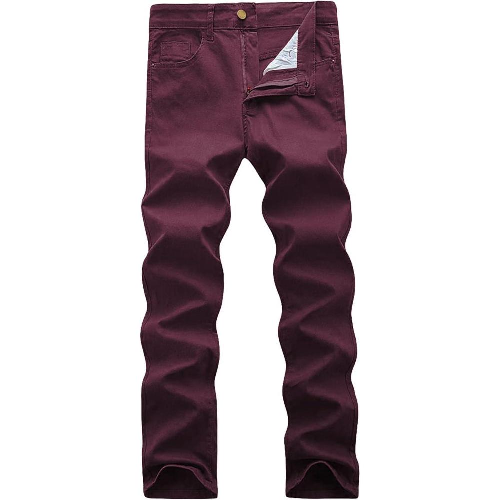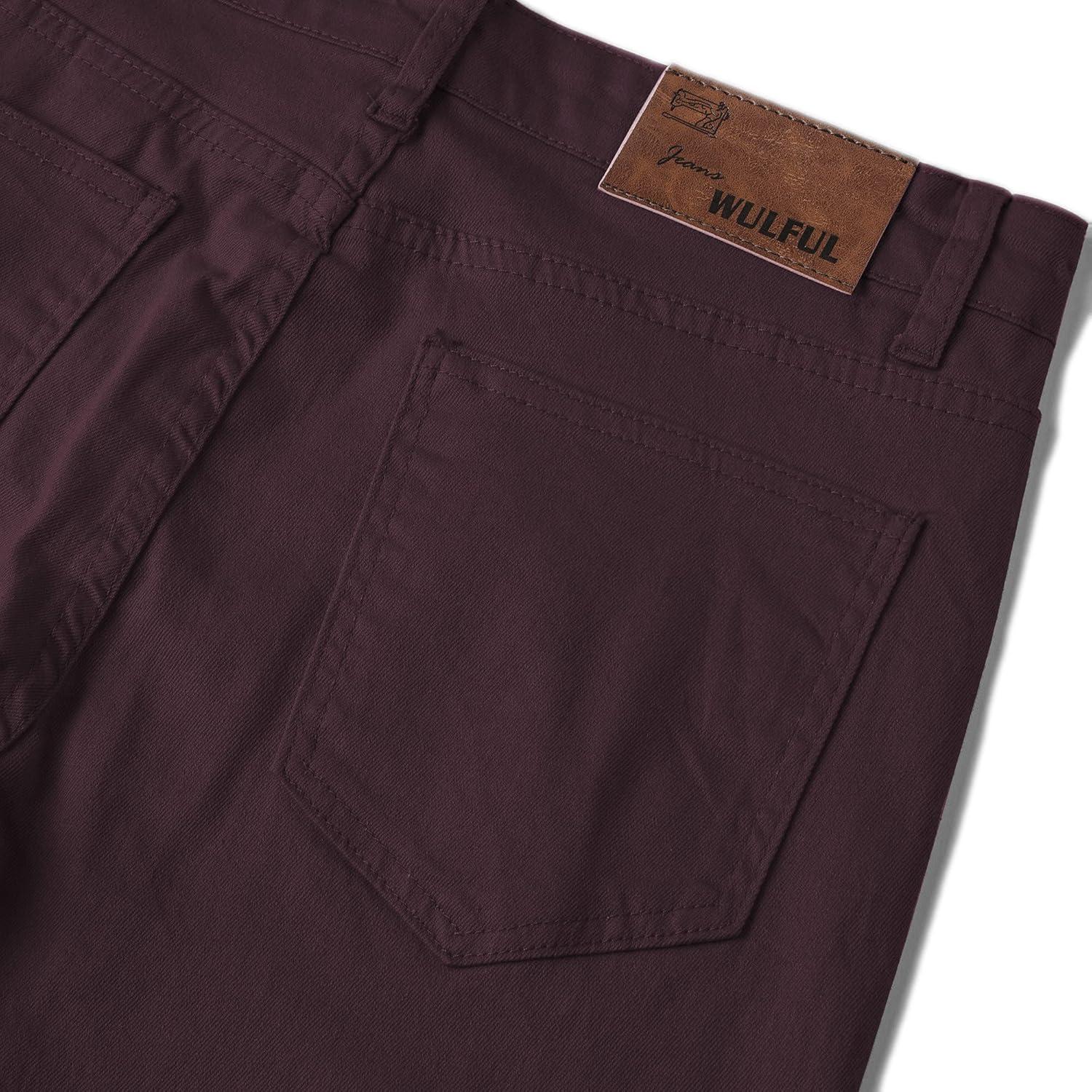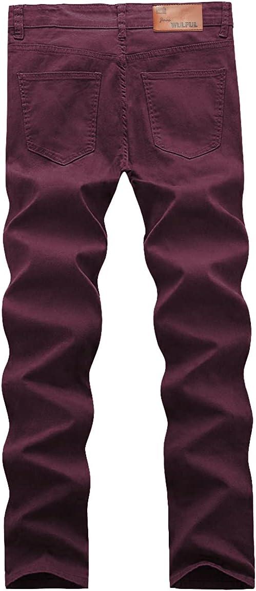 WULFUL Men’s Slim Fit Skinny Stretch Comfy Jeans Denim Pants(Dark Red01)
