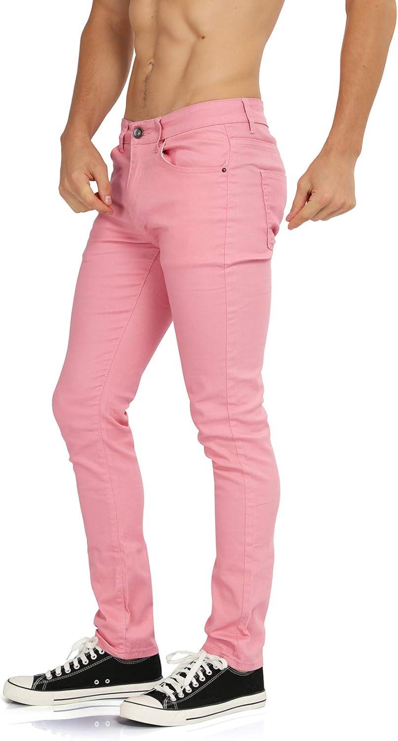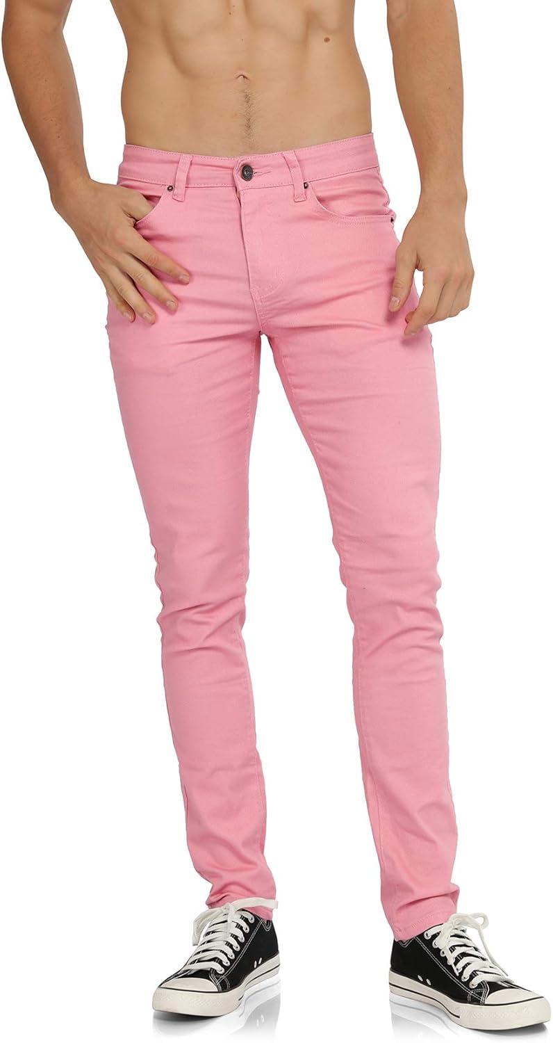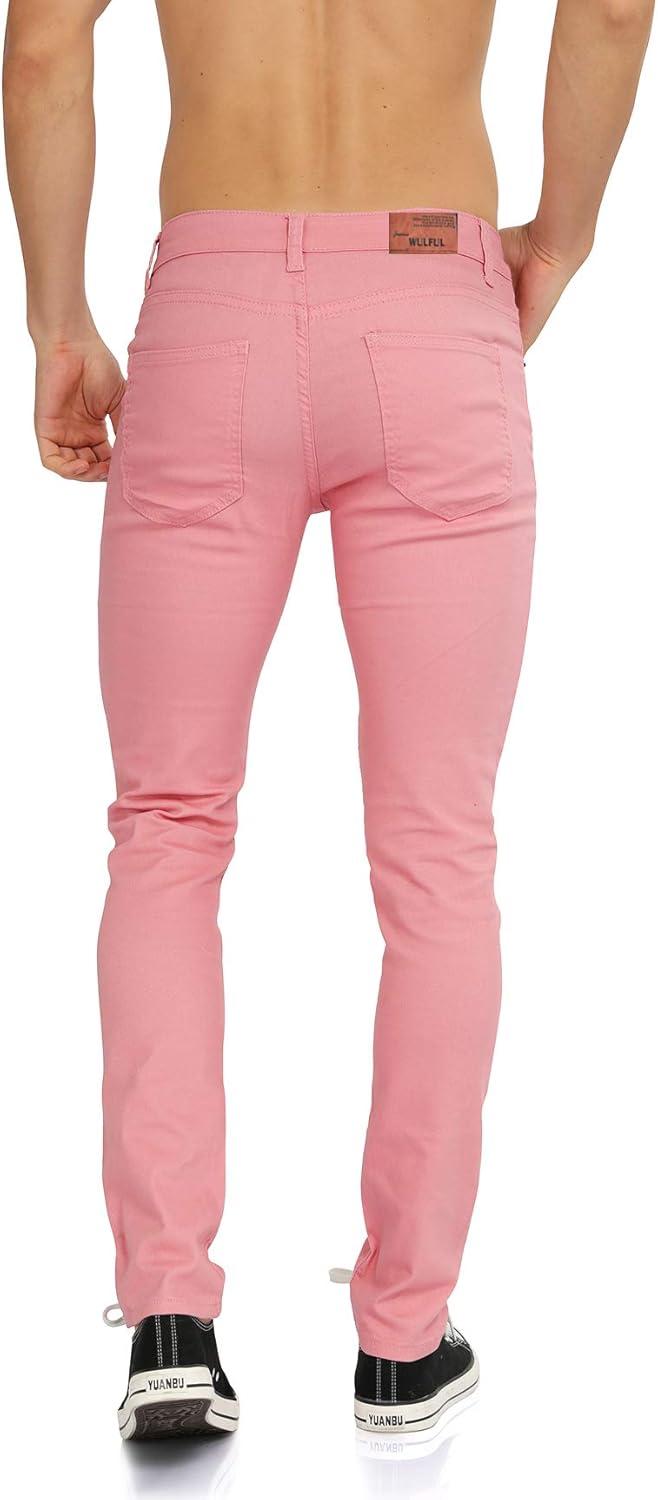 WULFUL Men's Slim Fit Skinny Stretch Comfy Jeans Denim Pants(Pink)