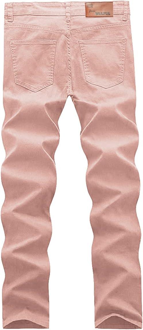 WULFUL Men's Slim Fit Skinny Stretch Comfy Jeans Denim Pants(Pink01)
