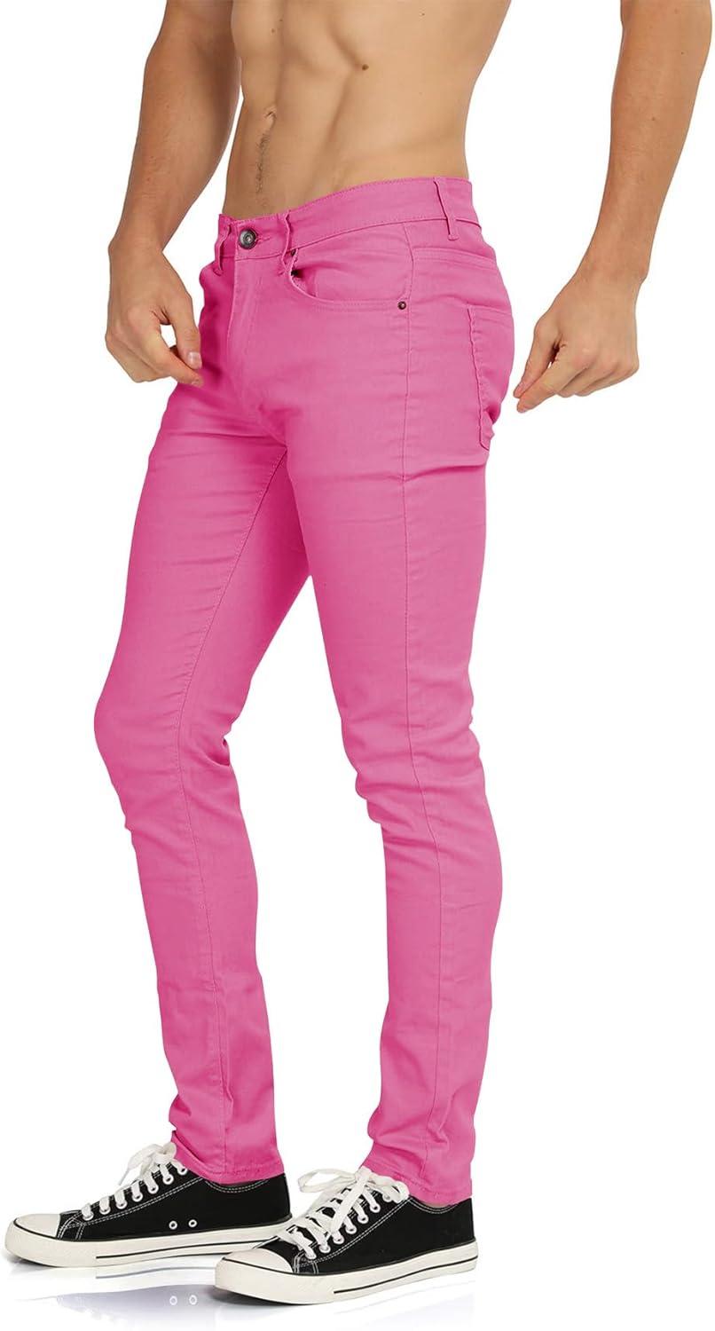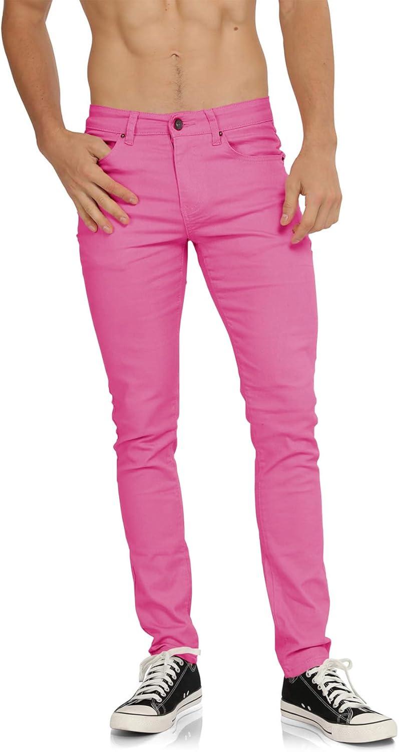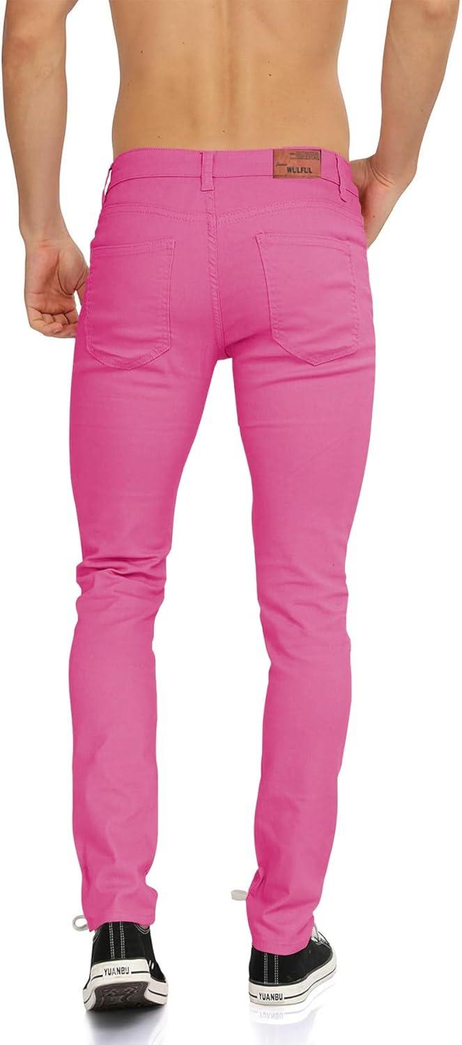 WULFUL Men's Slim Fit Skinny Stretch Comfy Jeans Denim Pants(Rose Red)
