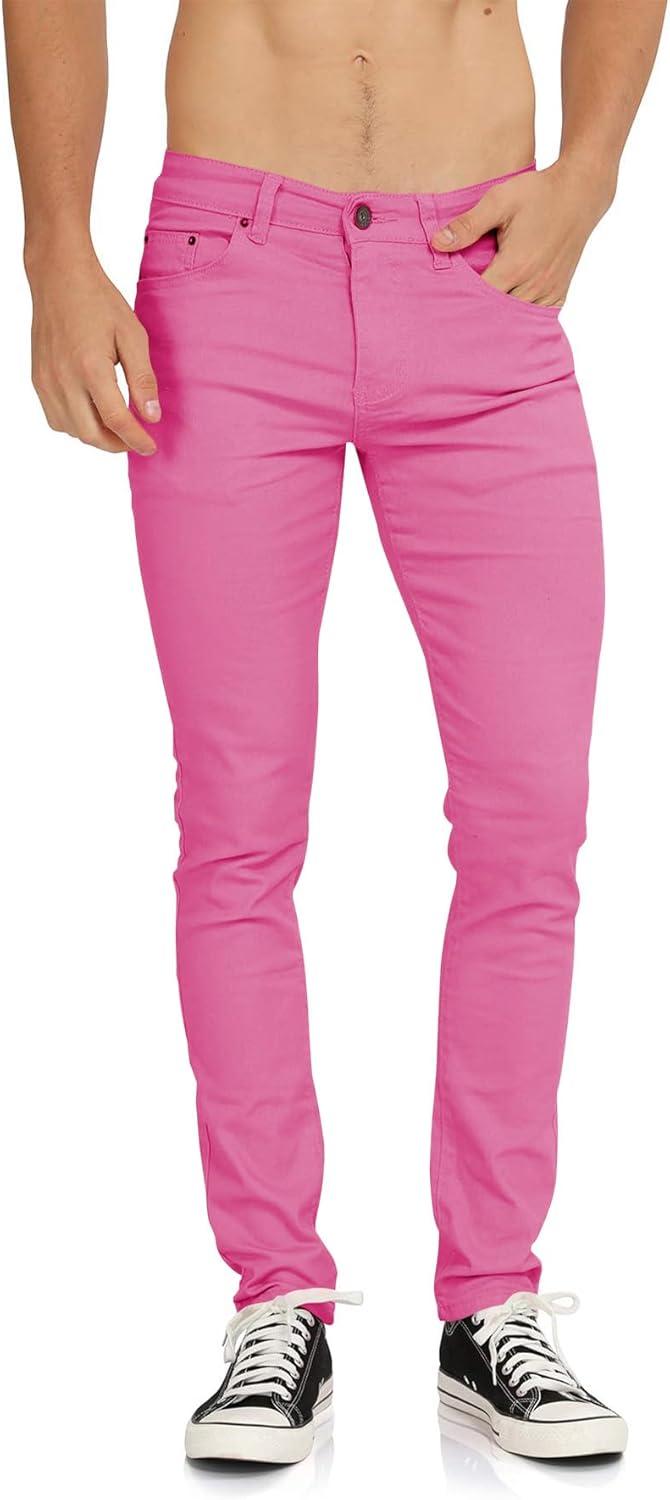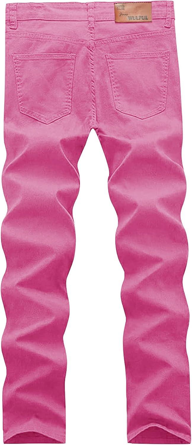 WULFUL Men’s Slim Fit Skinny Stretch Comfy Jeans Denim Pants(Rose Red)