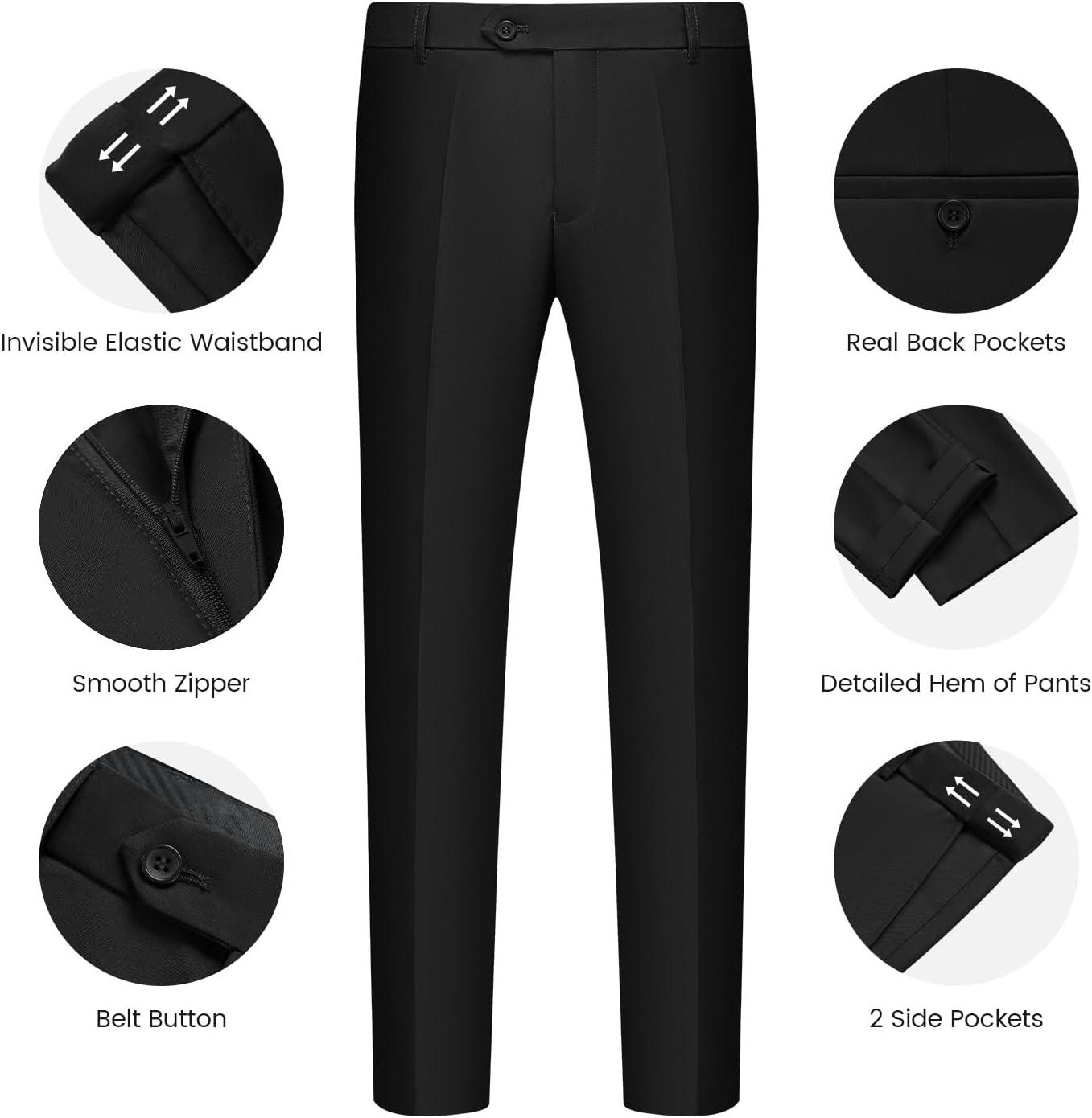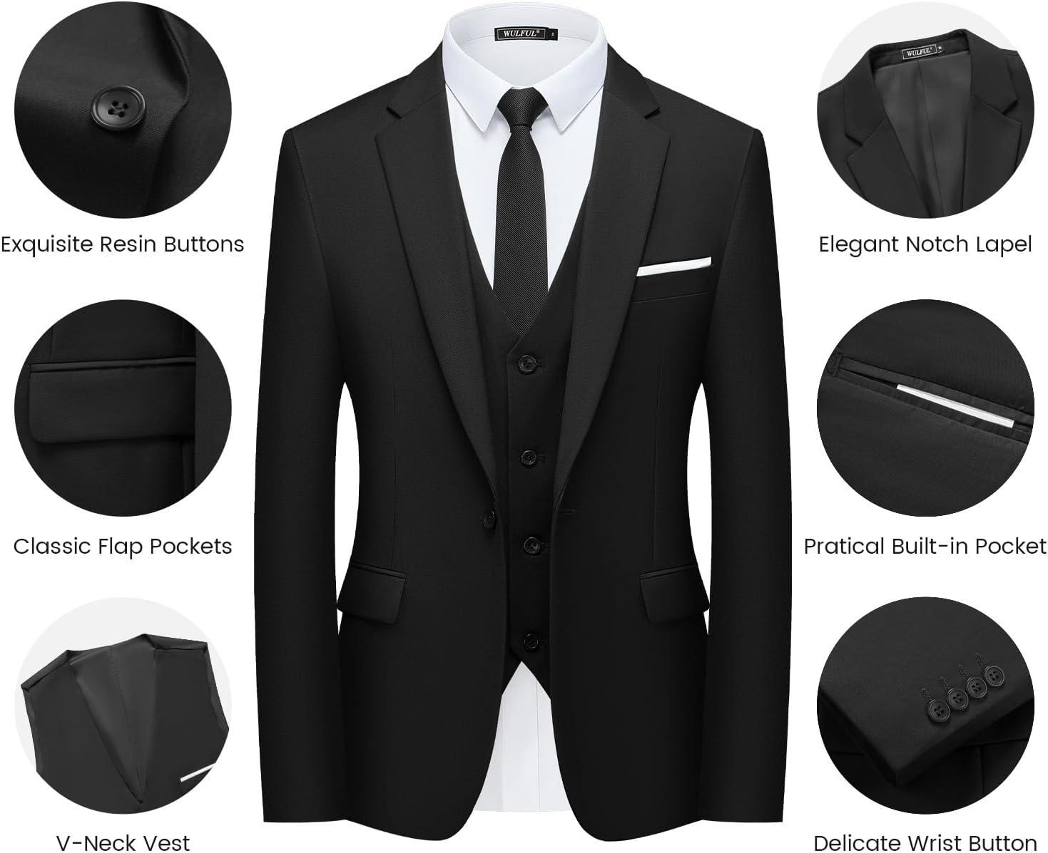 WULFUL Men’s Slim Fit Suit One Button 3-Piece Blazer Dress Business Wedding Party Jacket Vest & Pant(Black)