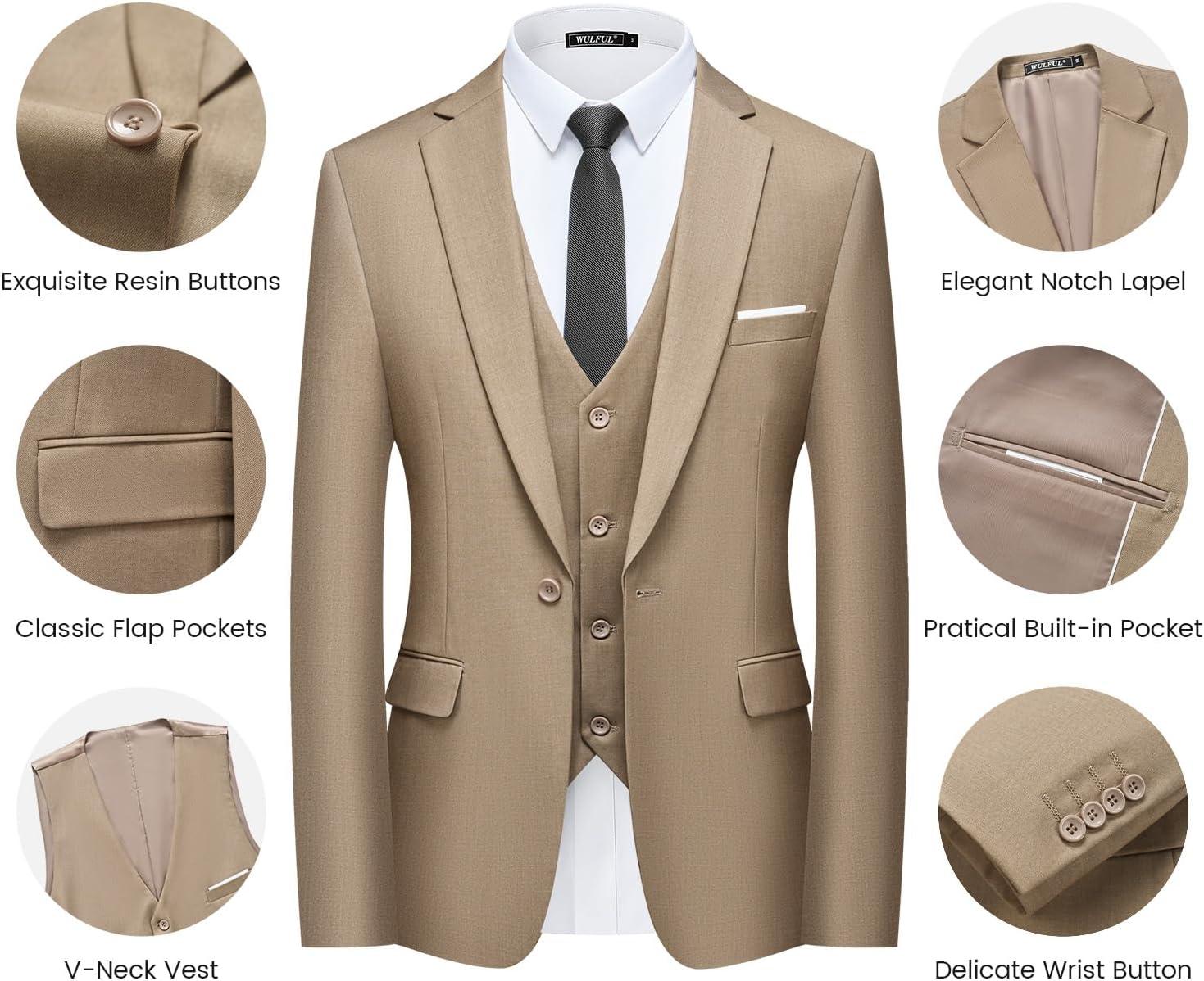 imageWULFUL Mens Slim Fit Suit One Button 3Piece Blazer Dress Business Wedding Party Jacket Vest amp PantLight Brown
