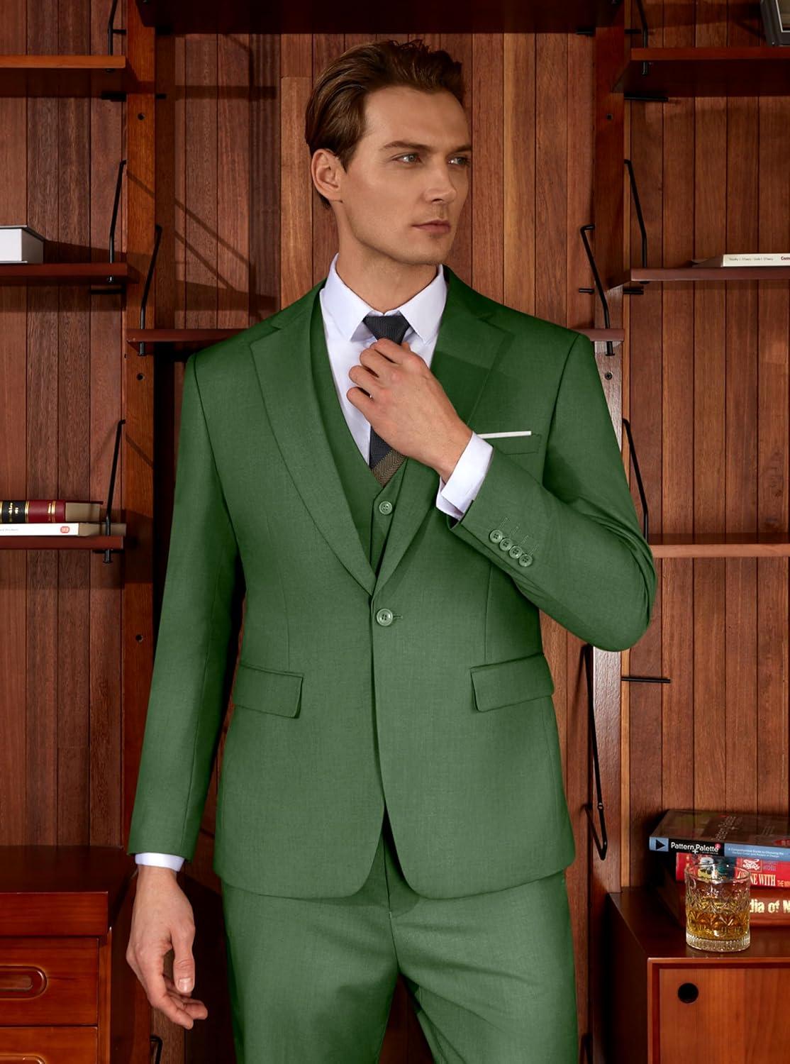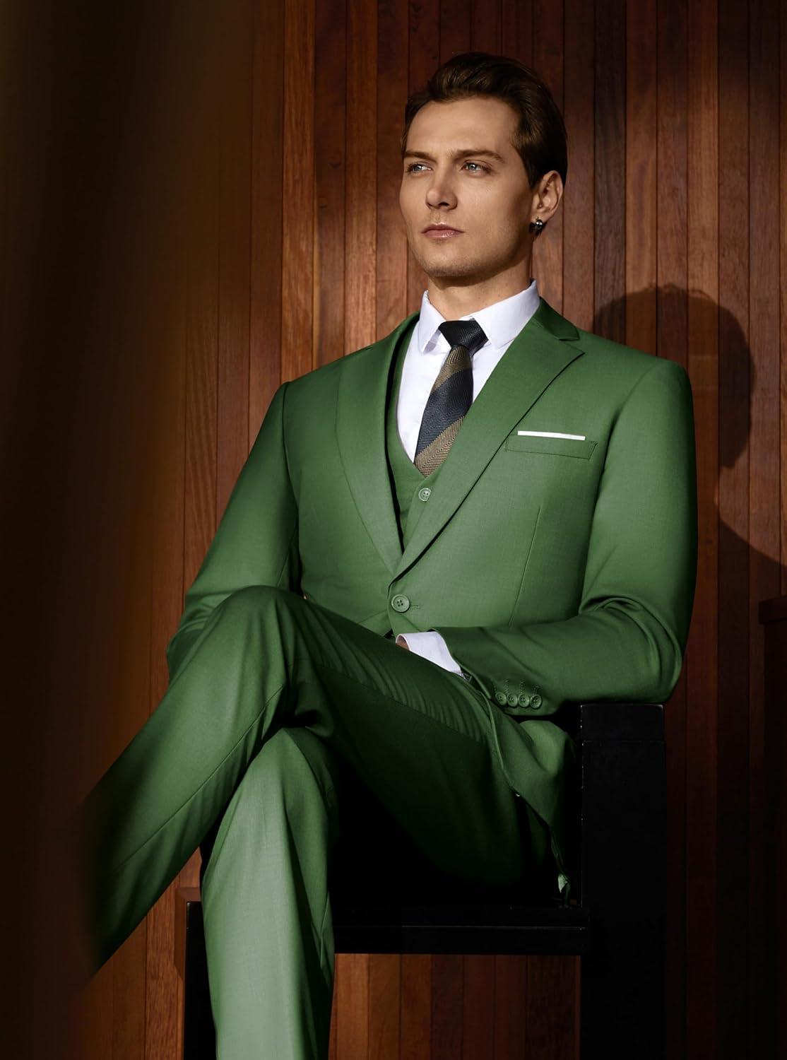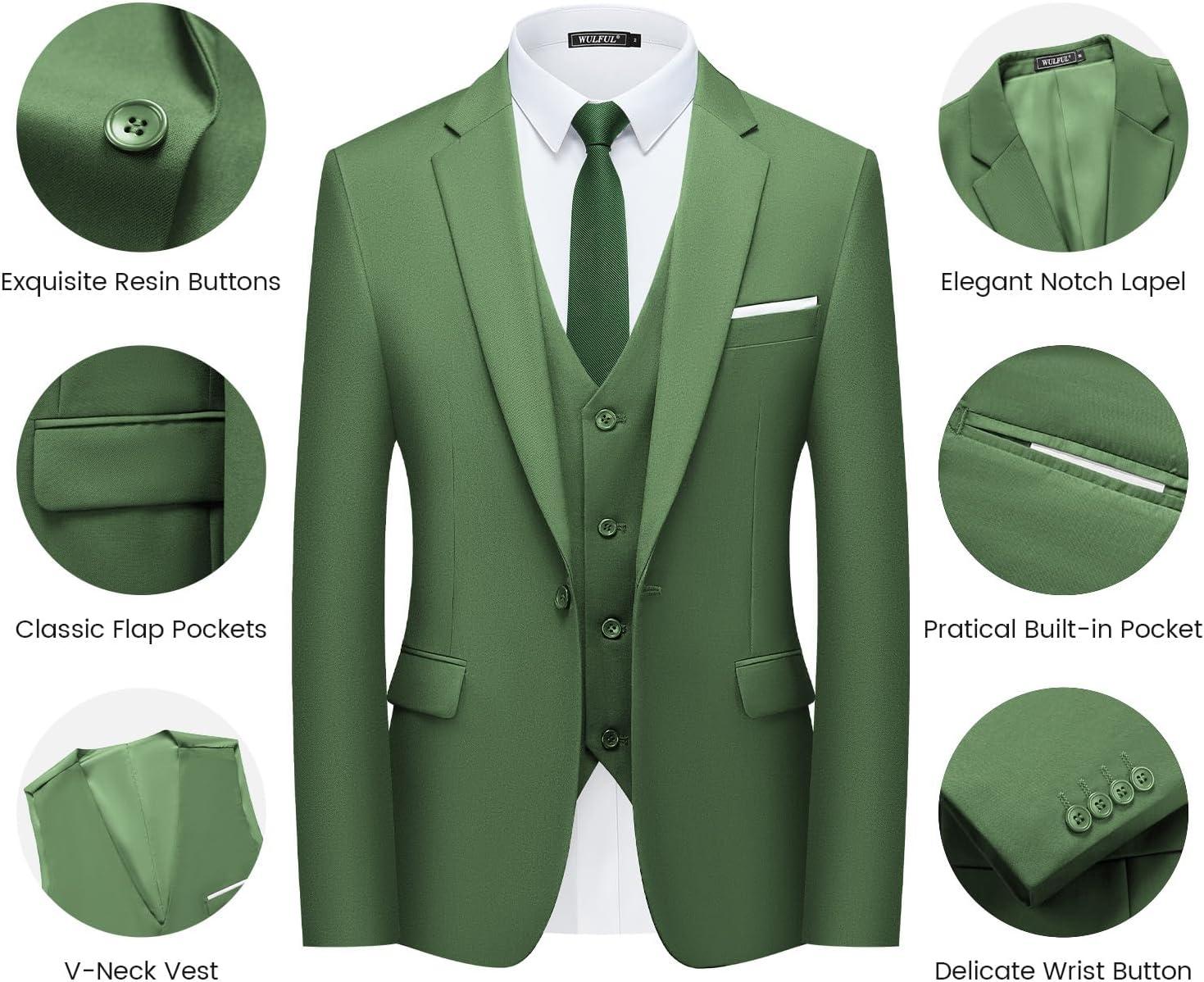 imageWULFUL Mens Slim Fit Suit One Button 3Piece Blazer Dress Business Wedding Party Jacket Vest amp PantSage Green