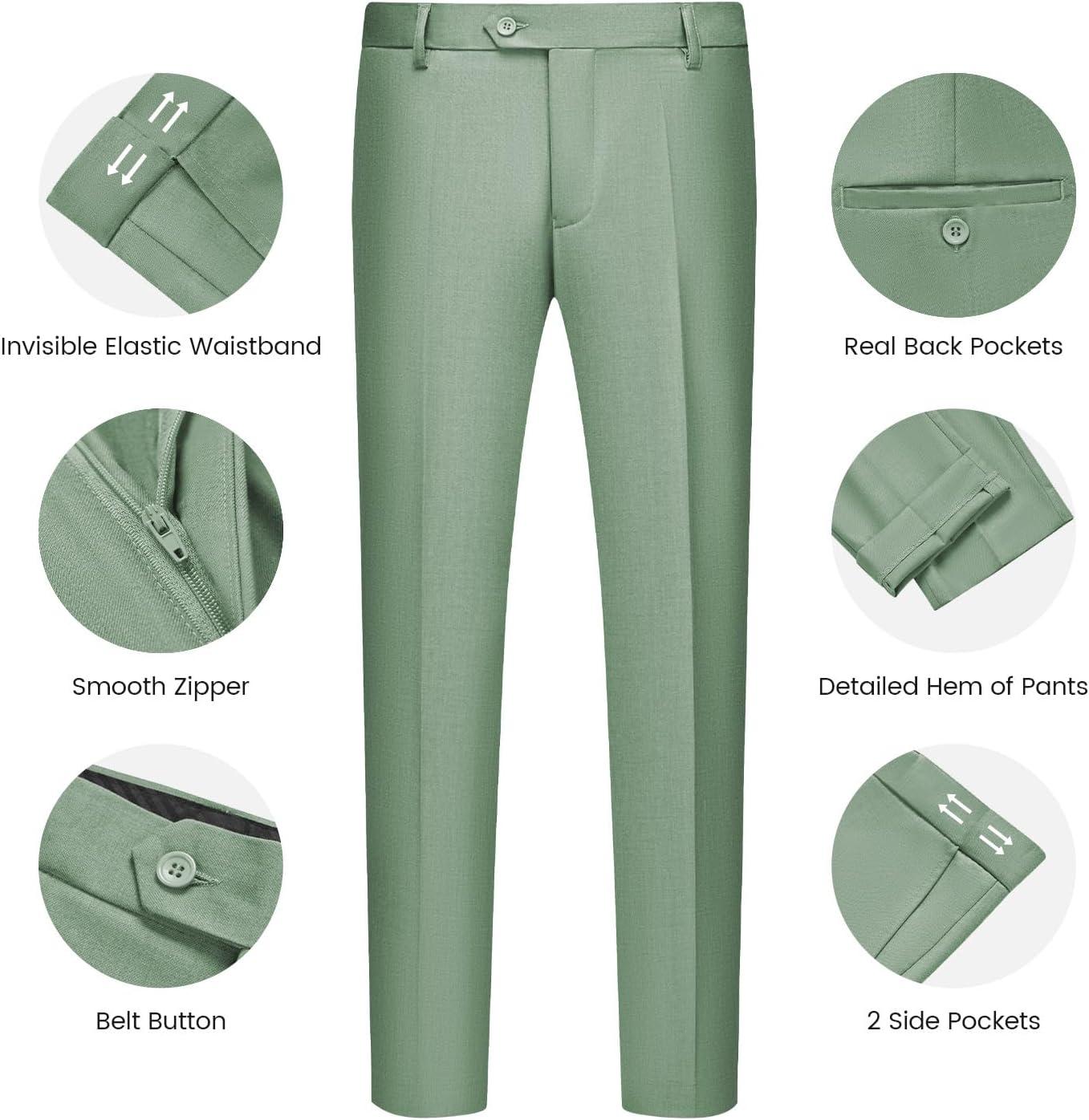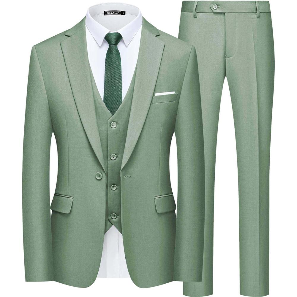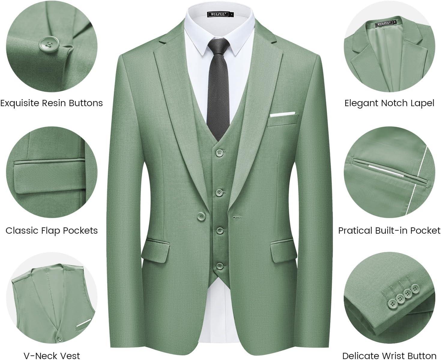 imageWULFUL Mens Slim Fit Suit One Button 3Piece Blazer Dress Business Wedding Party Jacket Vest ampamp PantSage Green