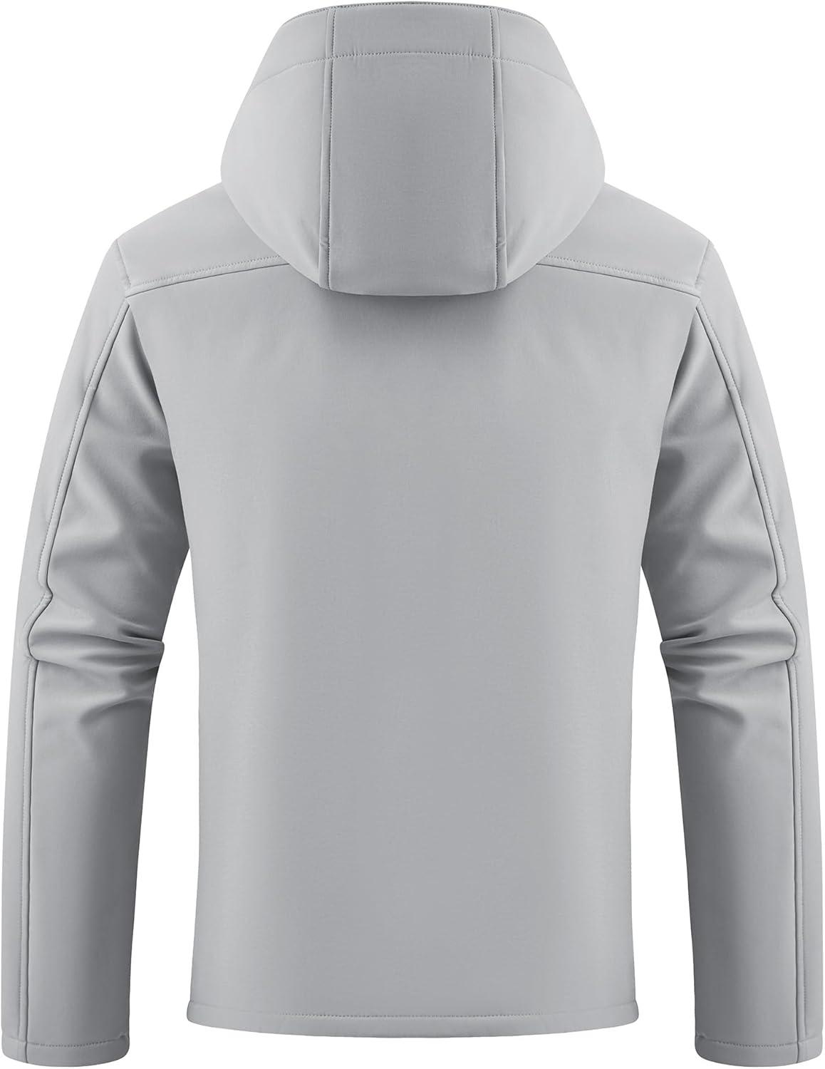WULFUL Men's Softshell Jacket Waterproof Lightweight Insulated Windbreaker Fleece Lined Rain Shell Jacket for Hiking Travel(Light Grey)