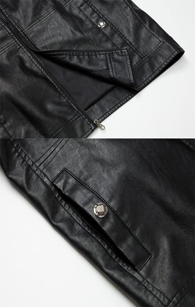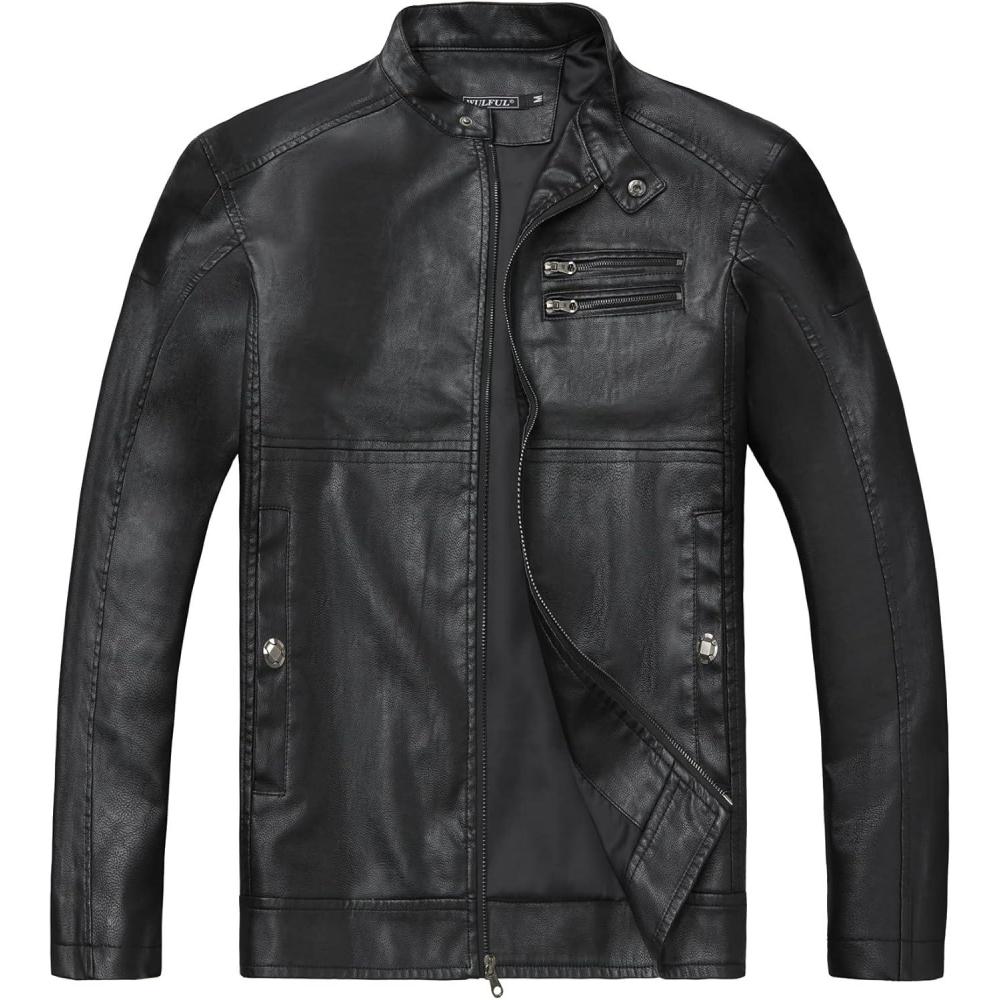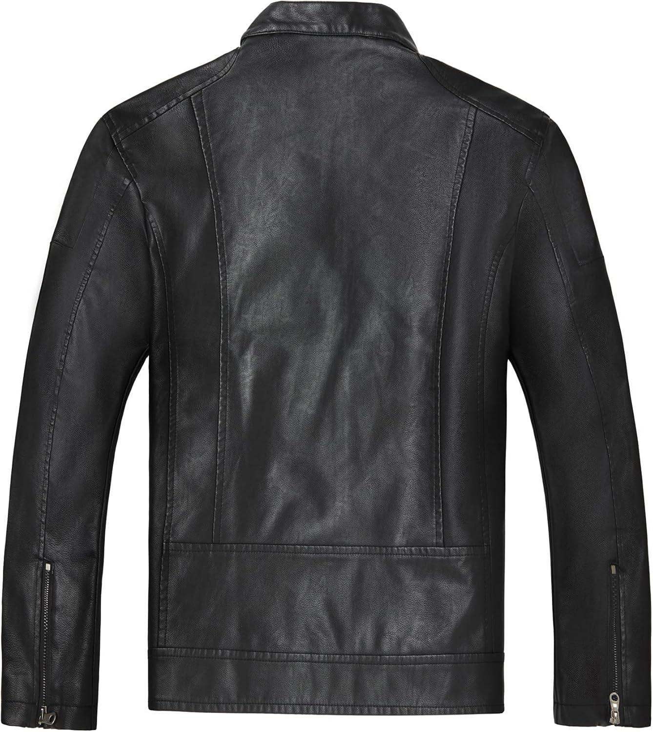 Men's Stand Collar Leather Jacket Motorcycle Lightweight Faux Leather Outwear