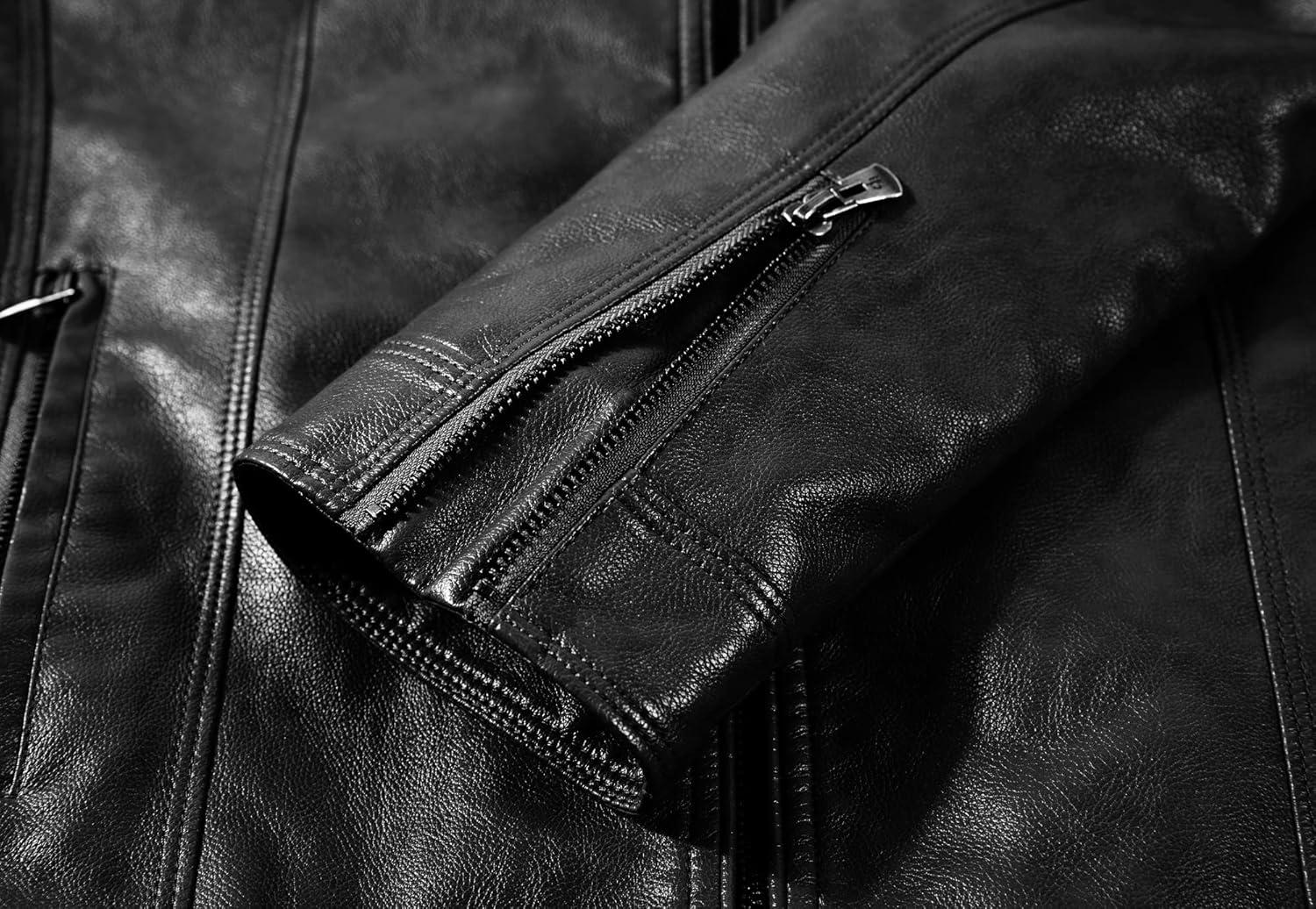 WULFUL Men’s Stand Collar Leather Jacket Motorcycle Lightweight Faux Leather Outwear(Black0073)