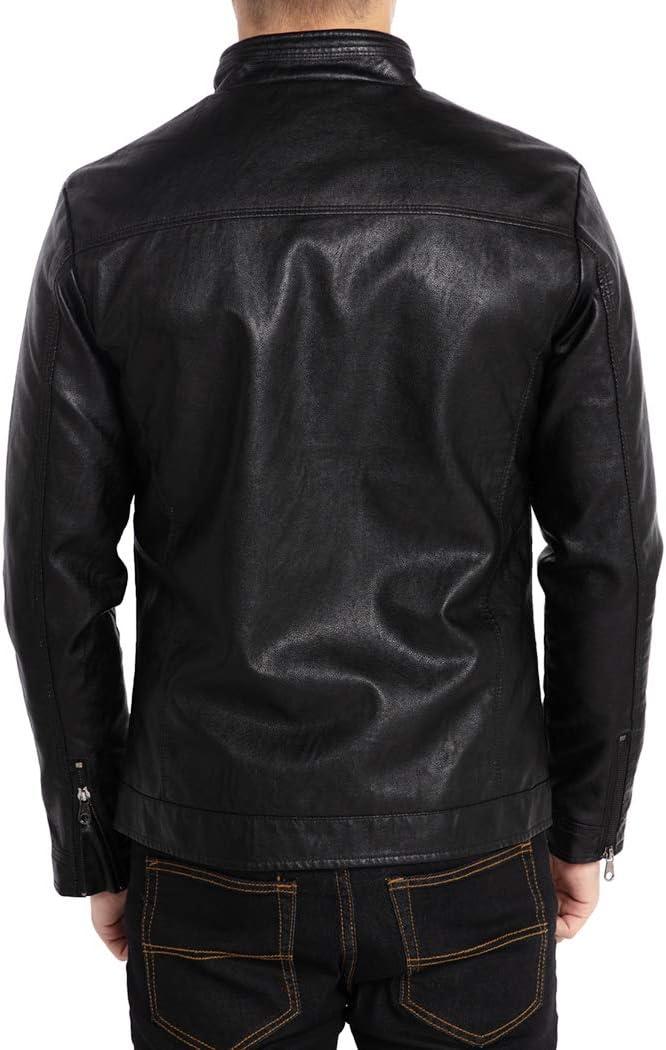 WULFUL Men's Stand Collar Leather Jacket Motorcycle Lightweight Faux Leather Outwear(Black)