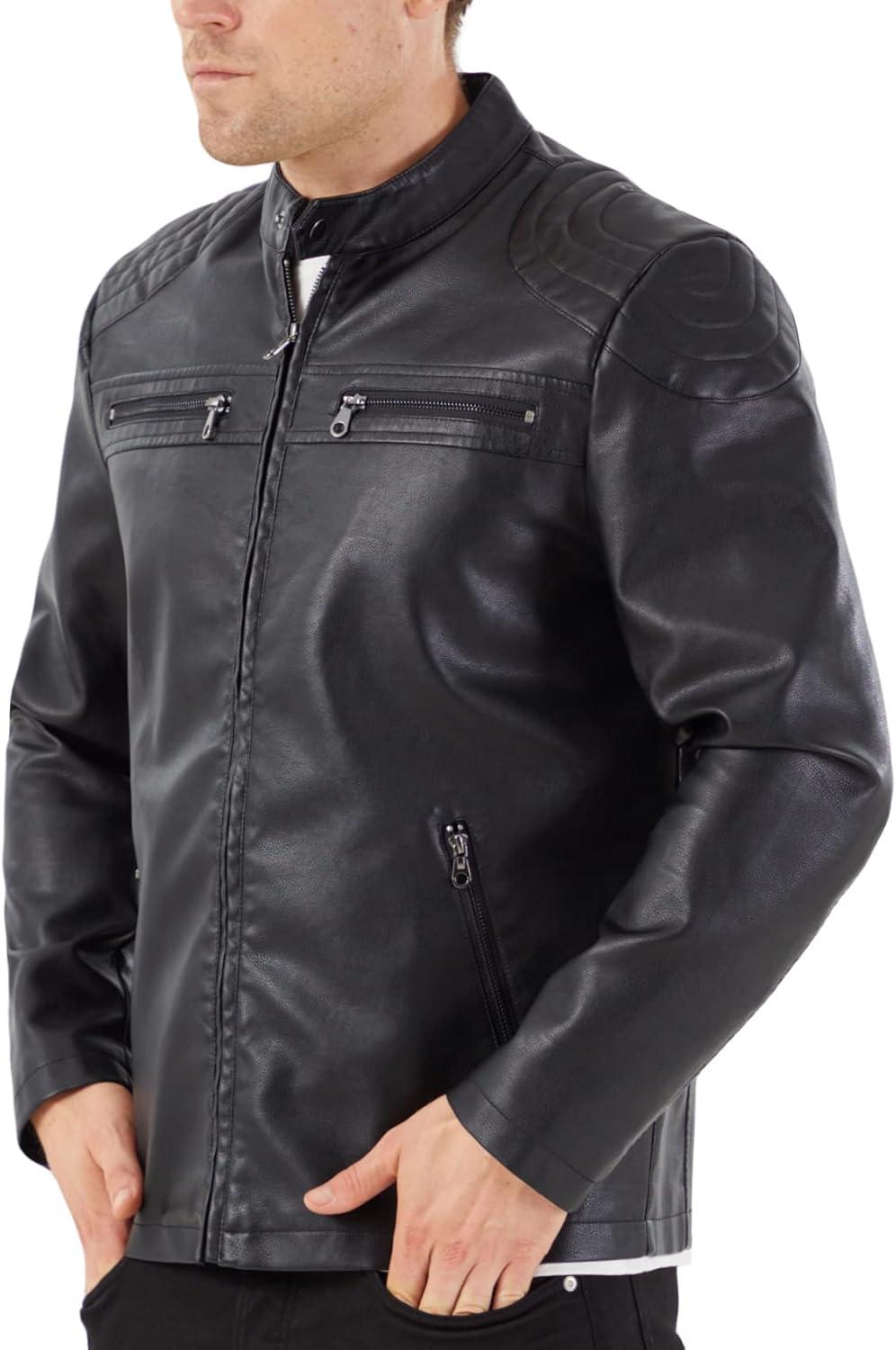 WULFUL Men's Stand Collar Leather Jacket Motorcycle Lightweight Faux Leather Outwear(Black0073)