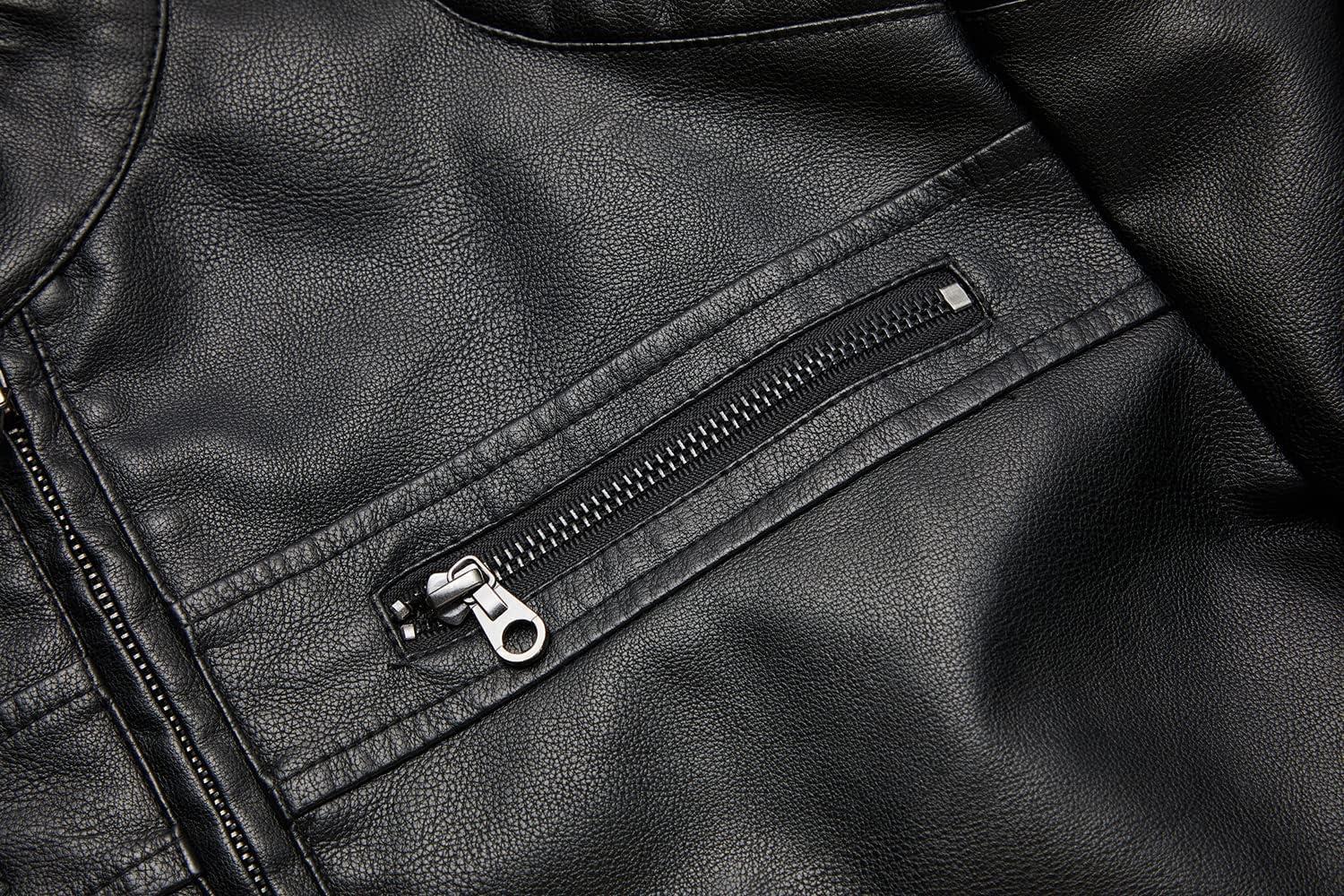 imageWULFUL Mens Stand Collar Leather Jacket Motorcycle Lightweight Faux Leather OutwearBlack0075