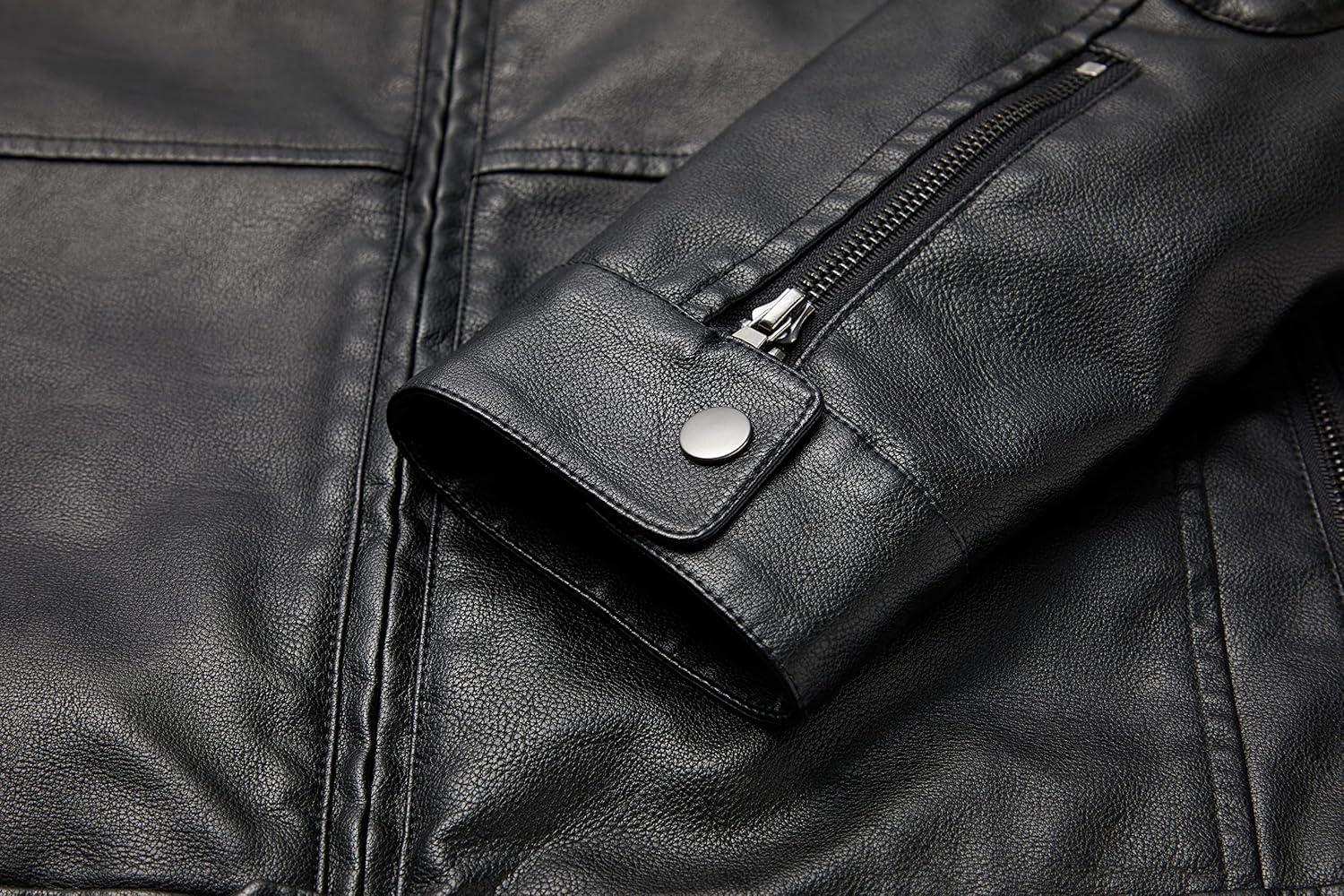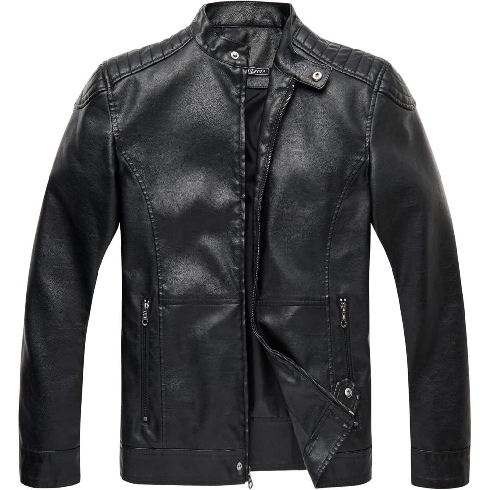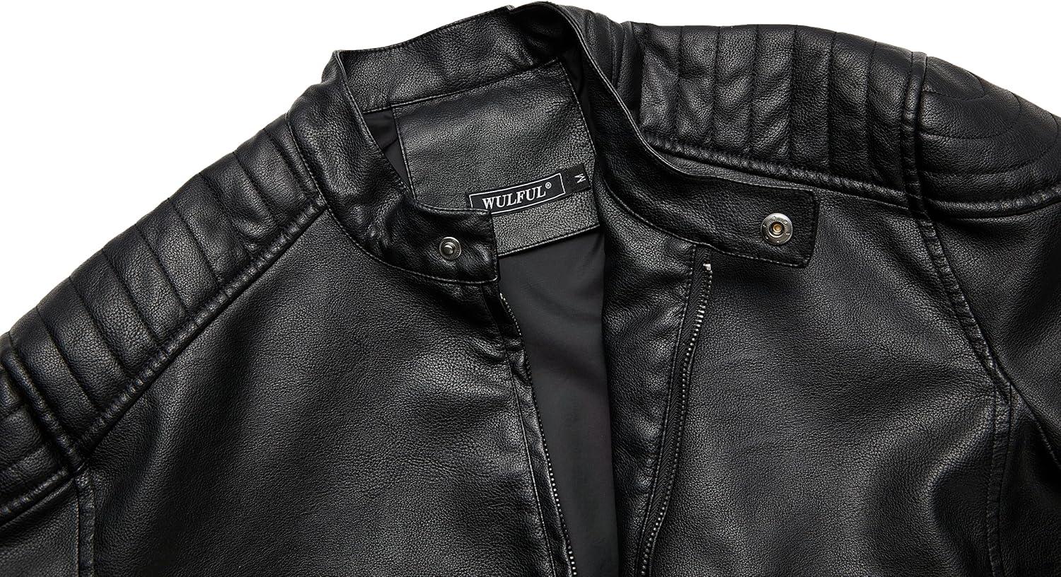 WULFUL Men’s Stand Collar Leather Jacket Motorcycle Lightweight Faux Leather Outwear(Black0073)