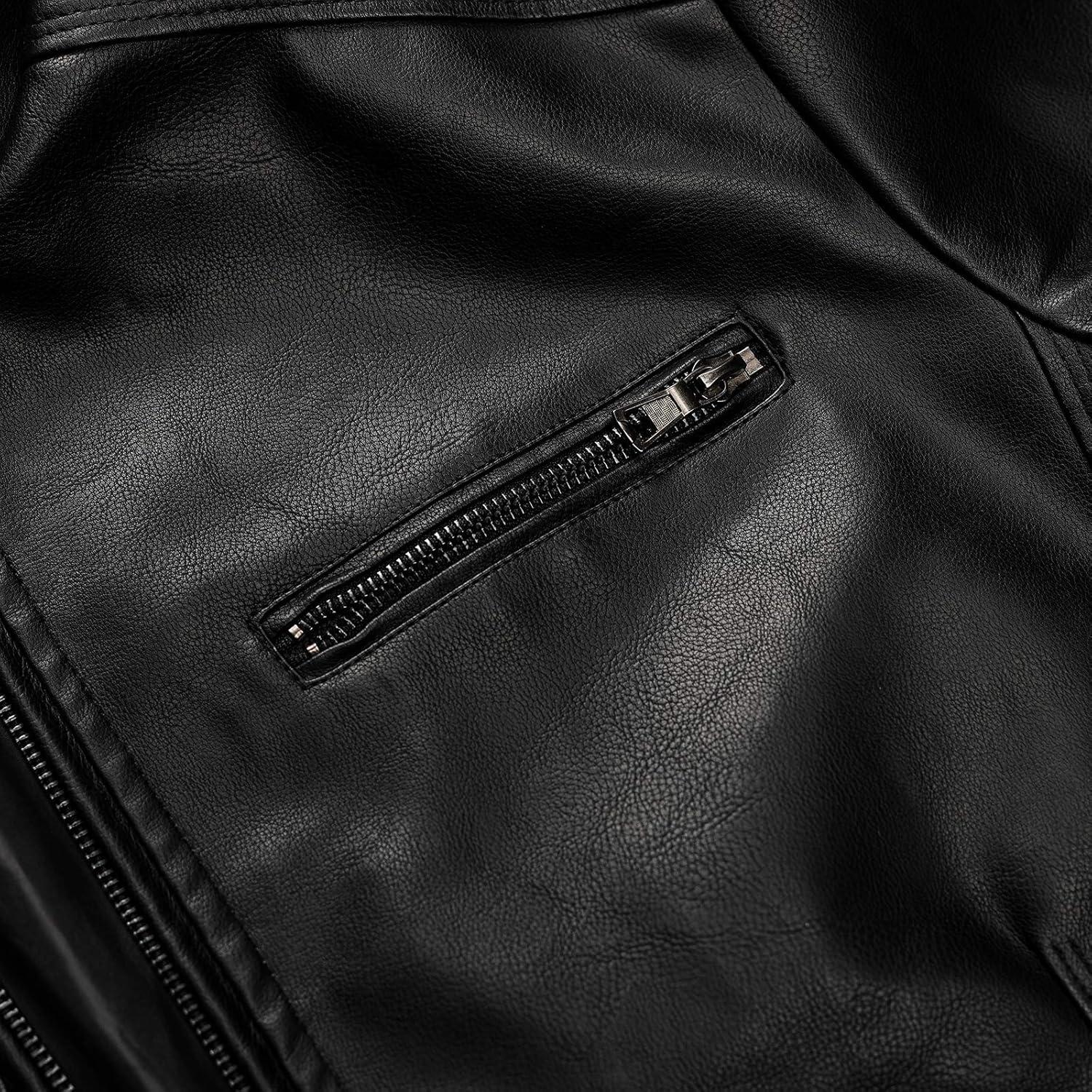 WULFUL Men’s Stand Collar Leather Jacket Motorcycle Lightweight Faux Leather Outwear(Black1303)