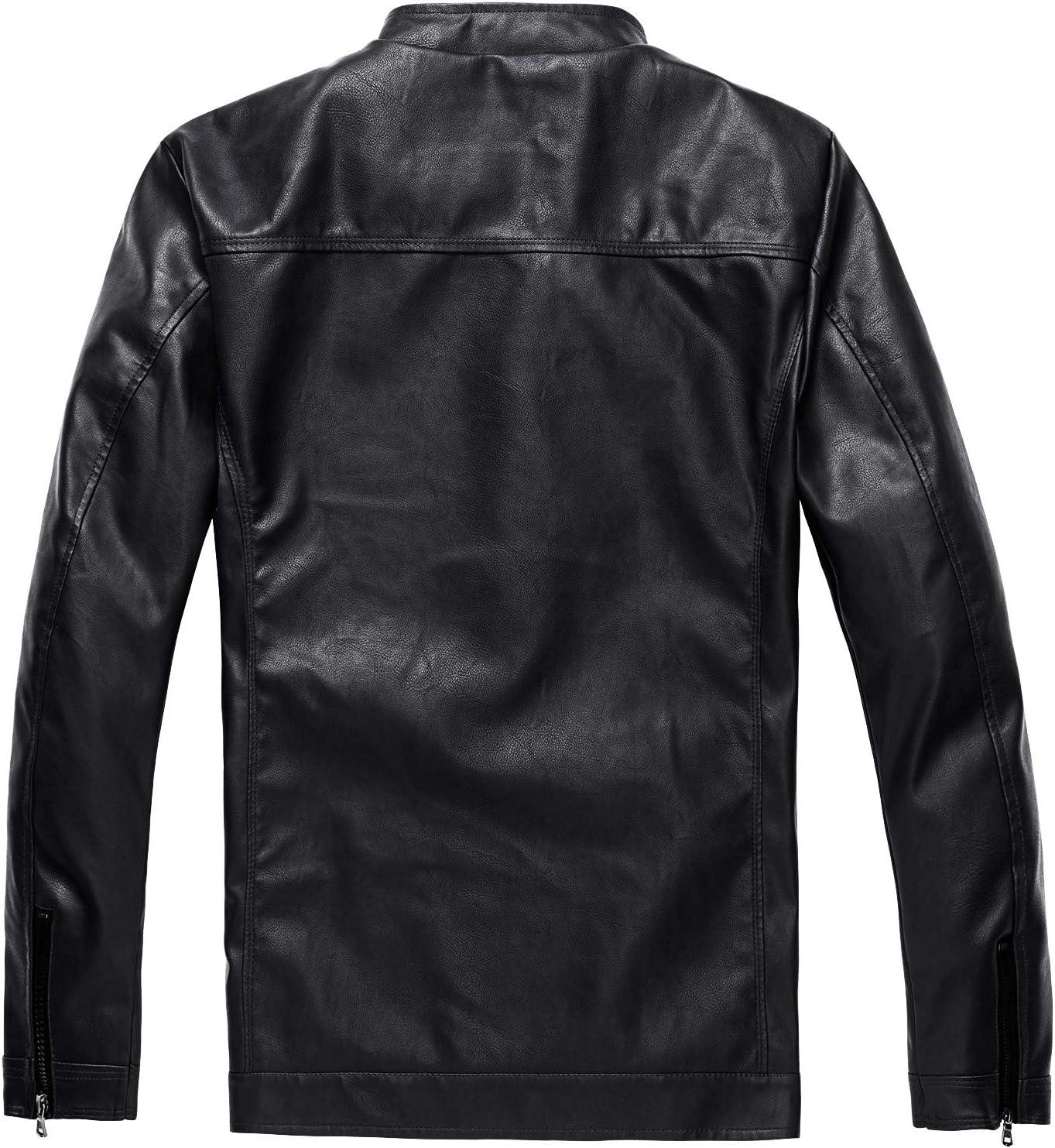 WULFUL Men's Stand Collar Leather Jacket Motorcycle Lightweight Faux Leather Outwear(Black1303)