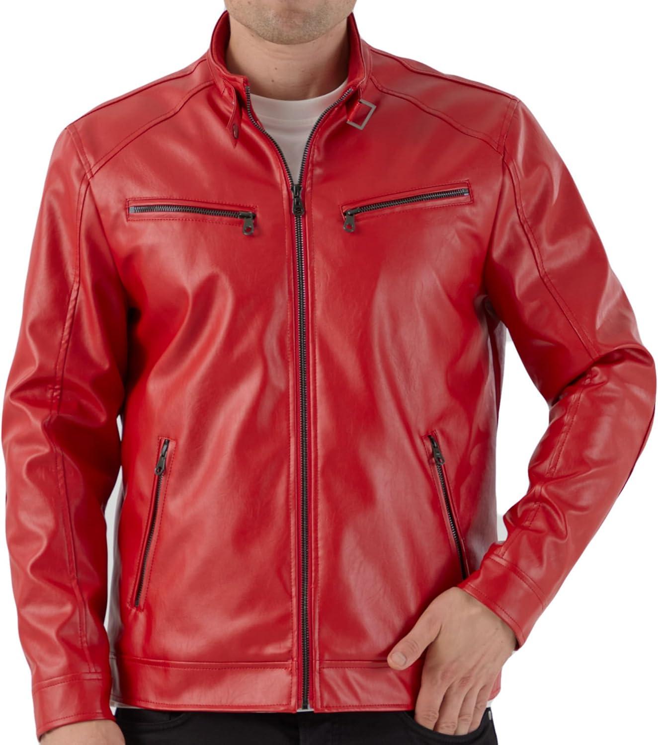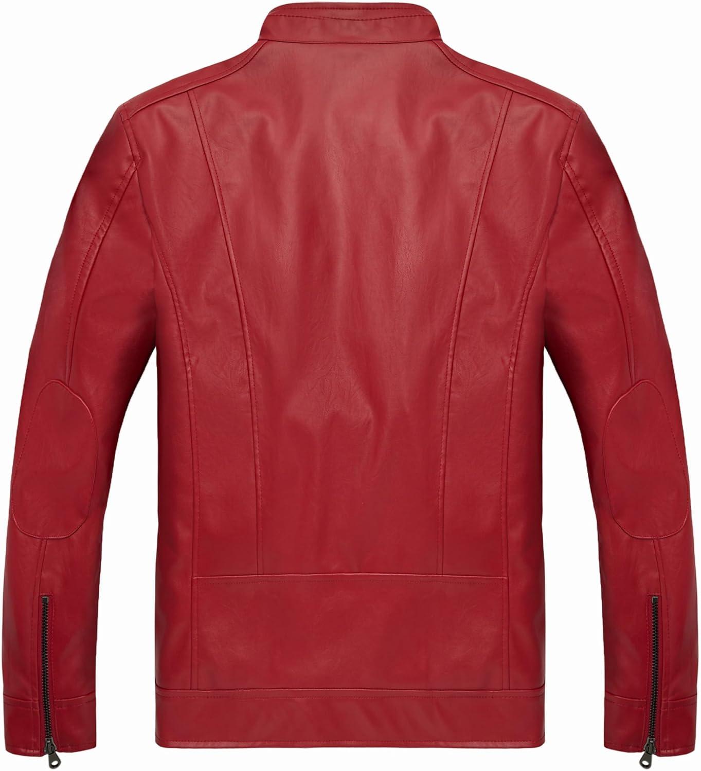 WULFUL Men's Stand Collar Leather Jacket Motorcycle Lightweight Faux Leather Outwear(Red031)