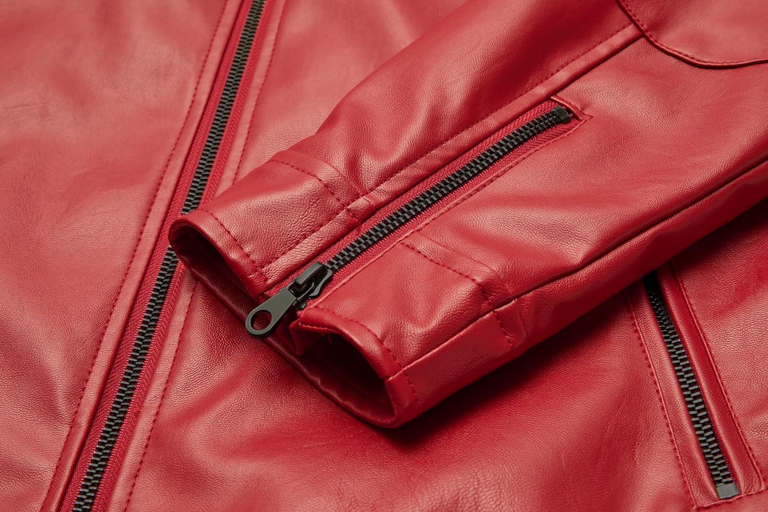 WULFUL Men’s Stand Collar Leather Jacket Motorcycle Lightweight Faux Leather Outwear(Red031)