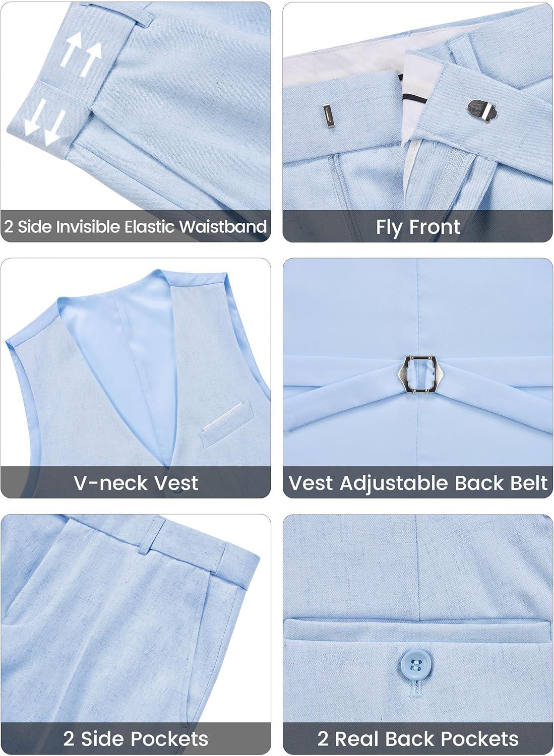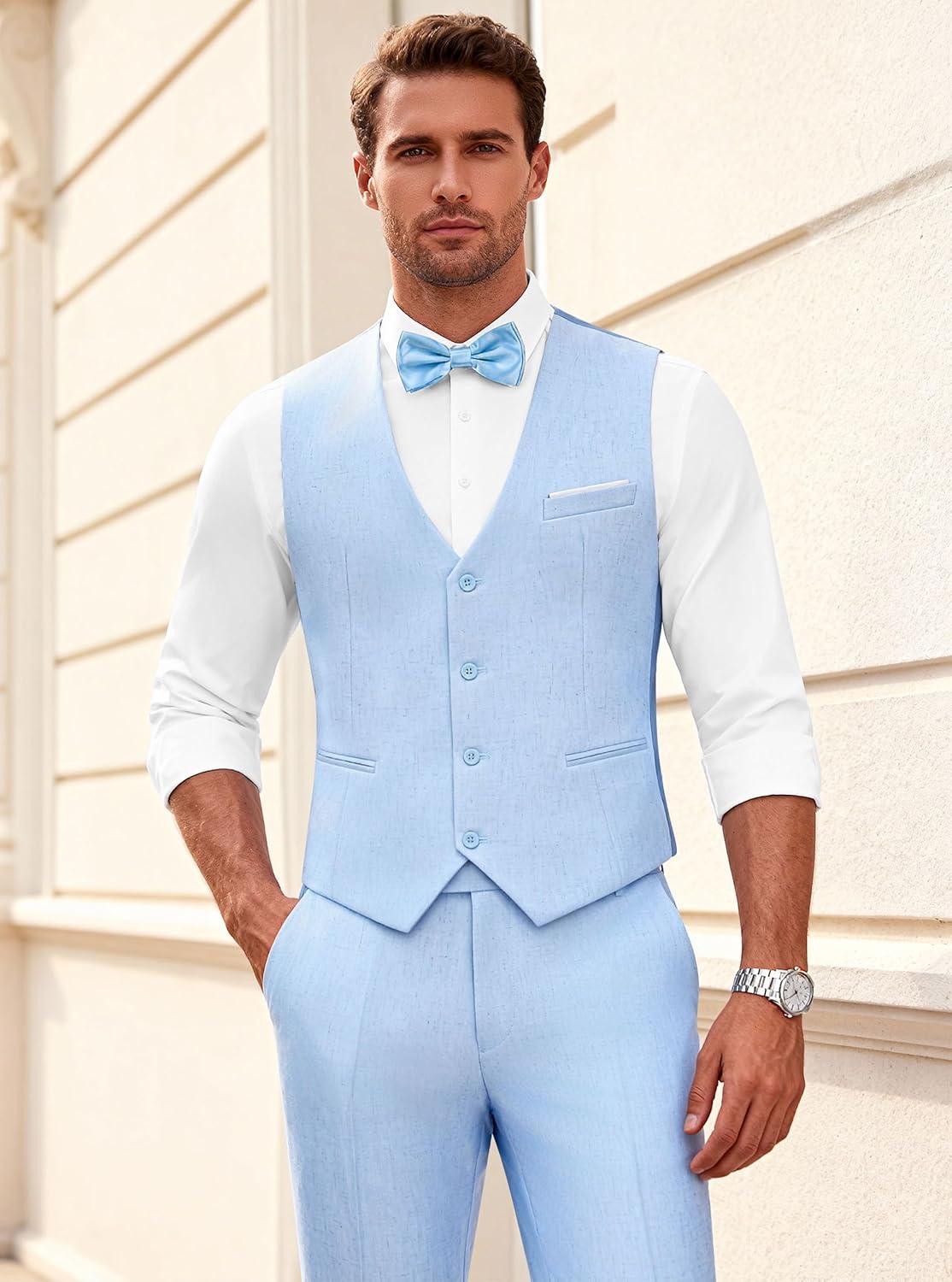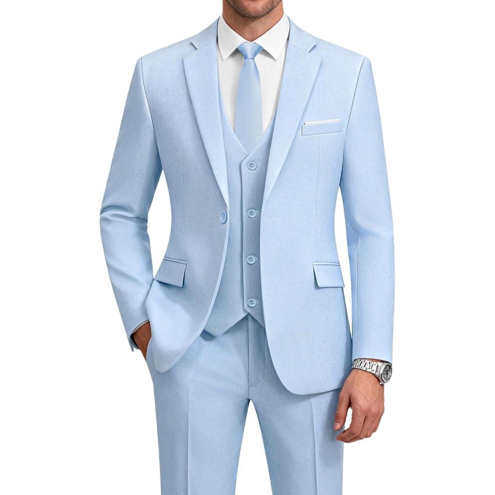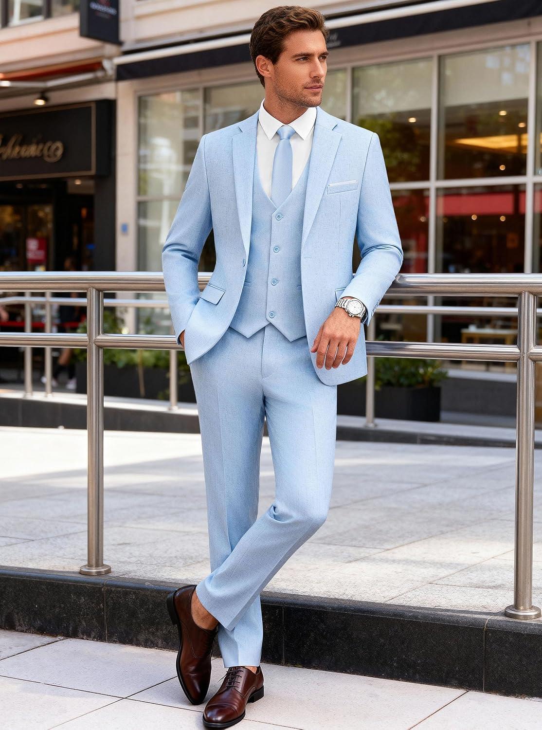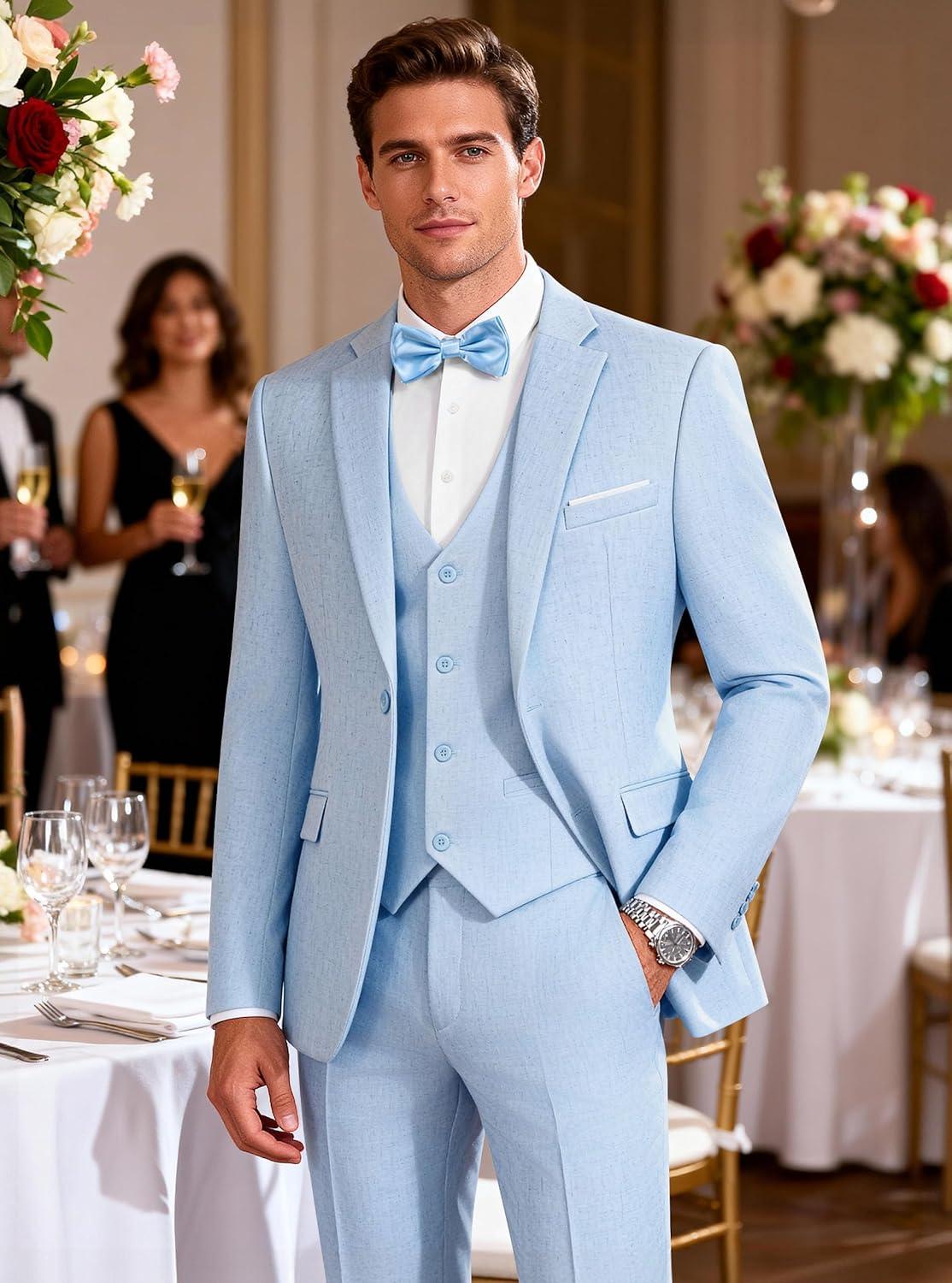 WULFUL Mens Suit 3 Piece Slim Fit Suits for Men One Button Blazer Jacket Pants Tuxedo Suit Set for Prom, Wedding and Business(Light Blue)