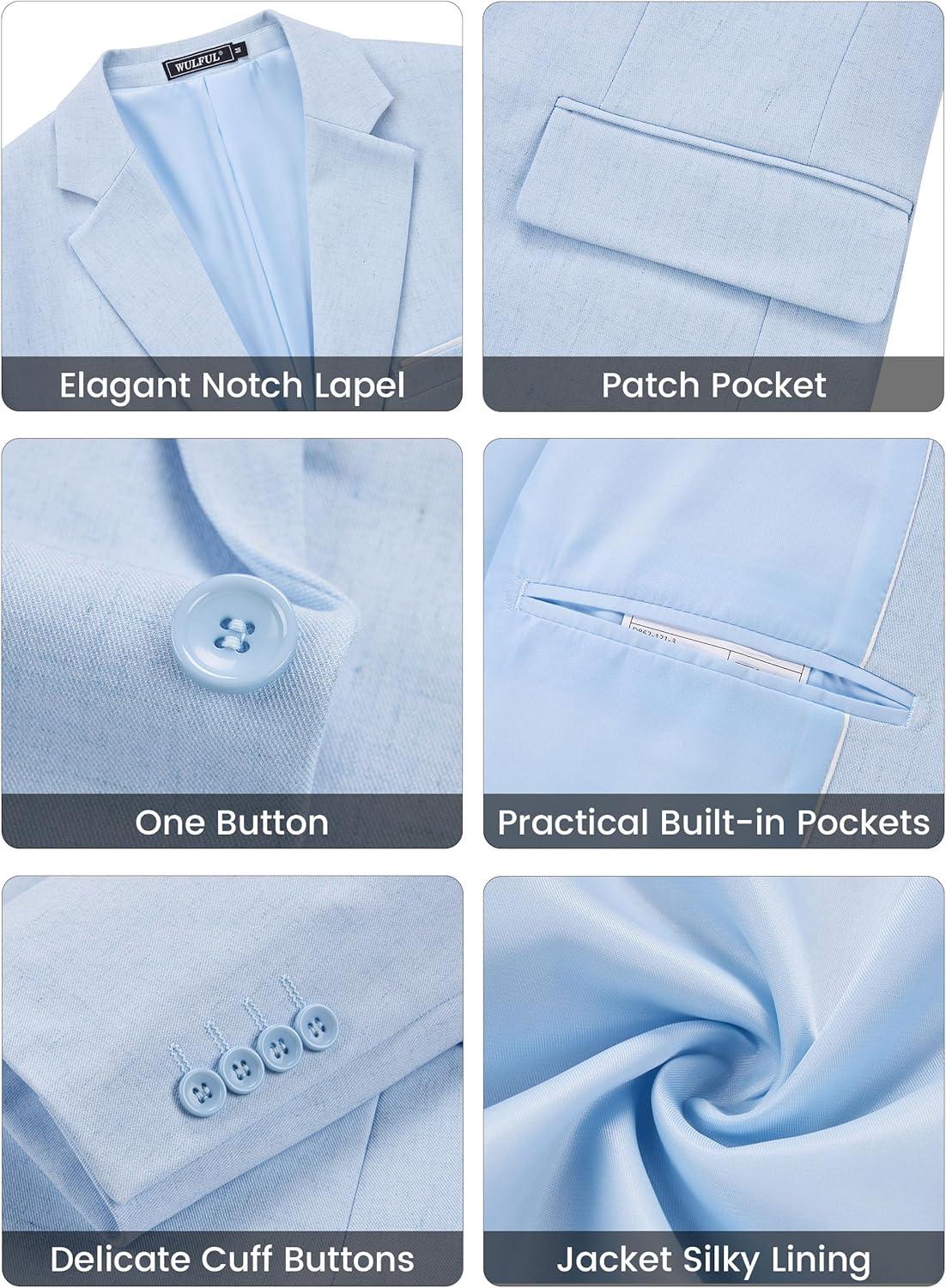 imageWULFUL Mens Suit 3 Piece Slim Fit Suits for Men One Button Blazer Jacket Pants Tuxedo Suit Set for Prom Wedding and BusinessLight Blue