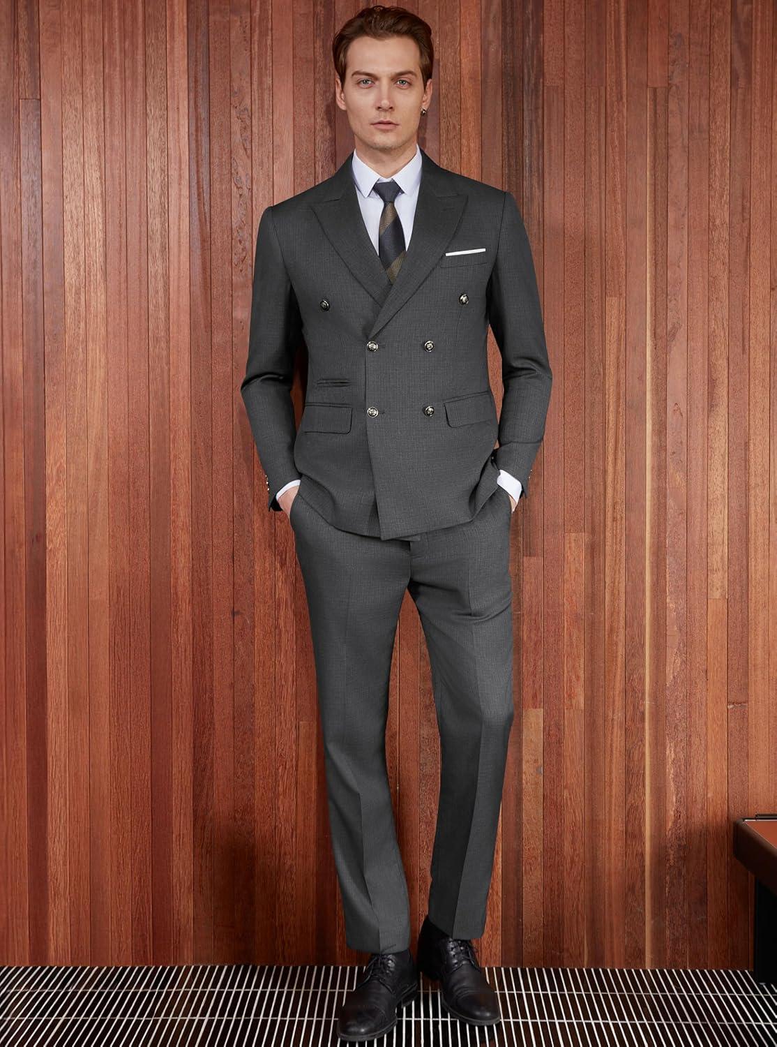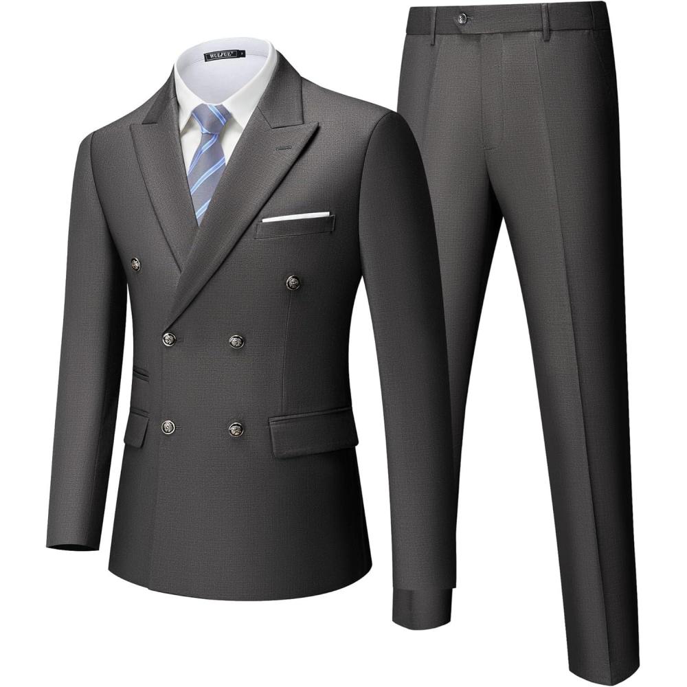 WULFUL Men's Suits Slim Fit 2 Piece Double Breasted Suit Men Tuxedo Blazer Jacket and Dress Pants Set for Business Wedding(Dark Grey)